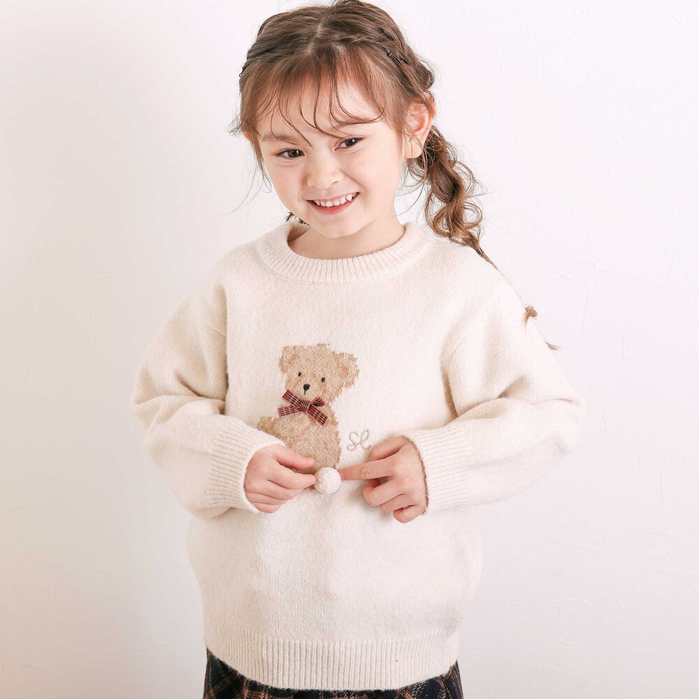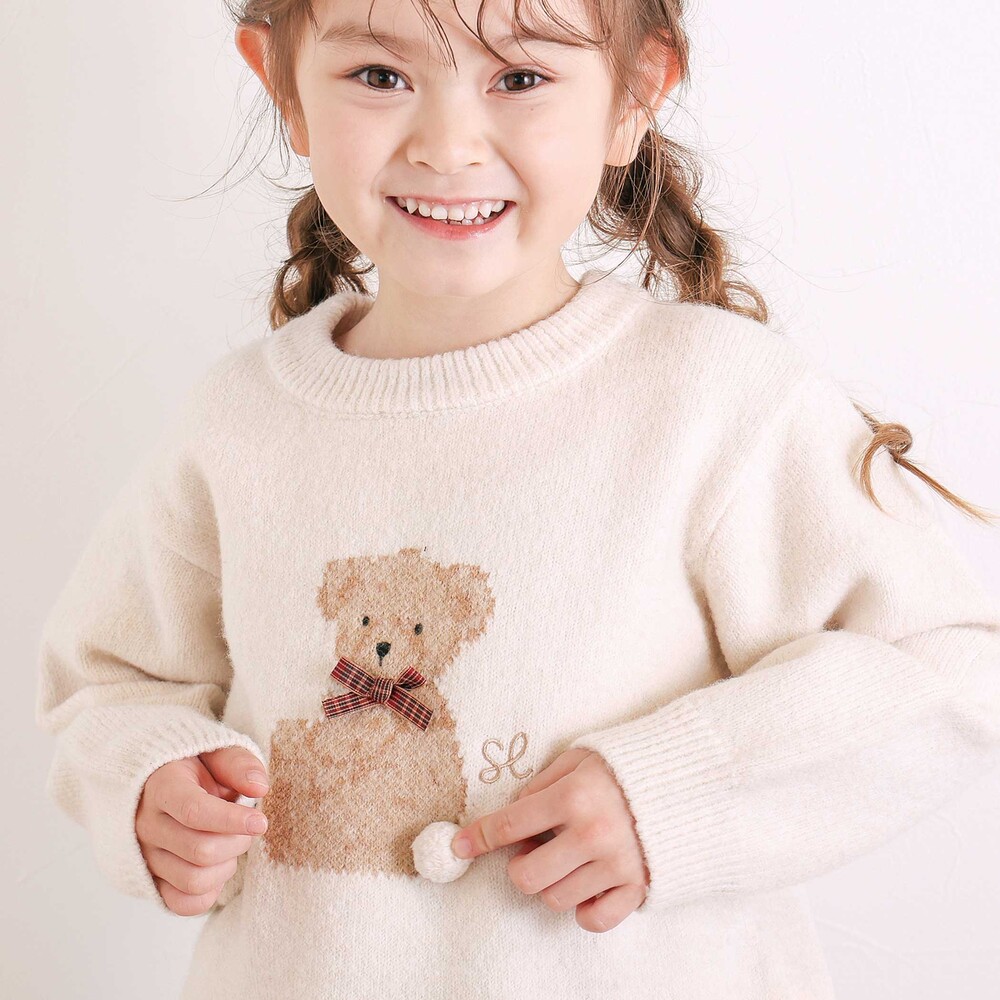 オフホワイト:リボンとボンボンがカワイイクマさん