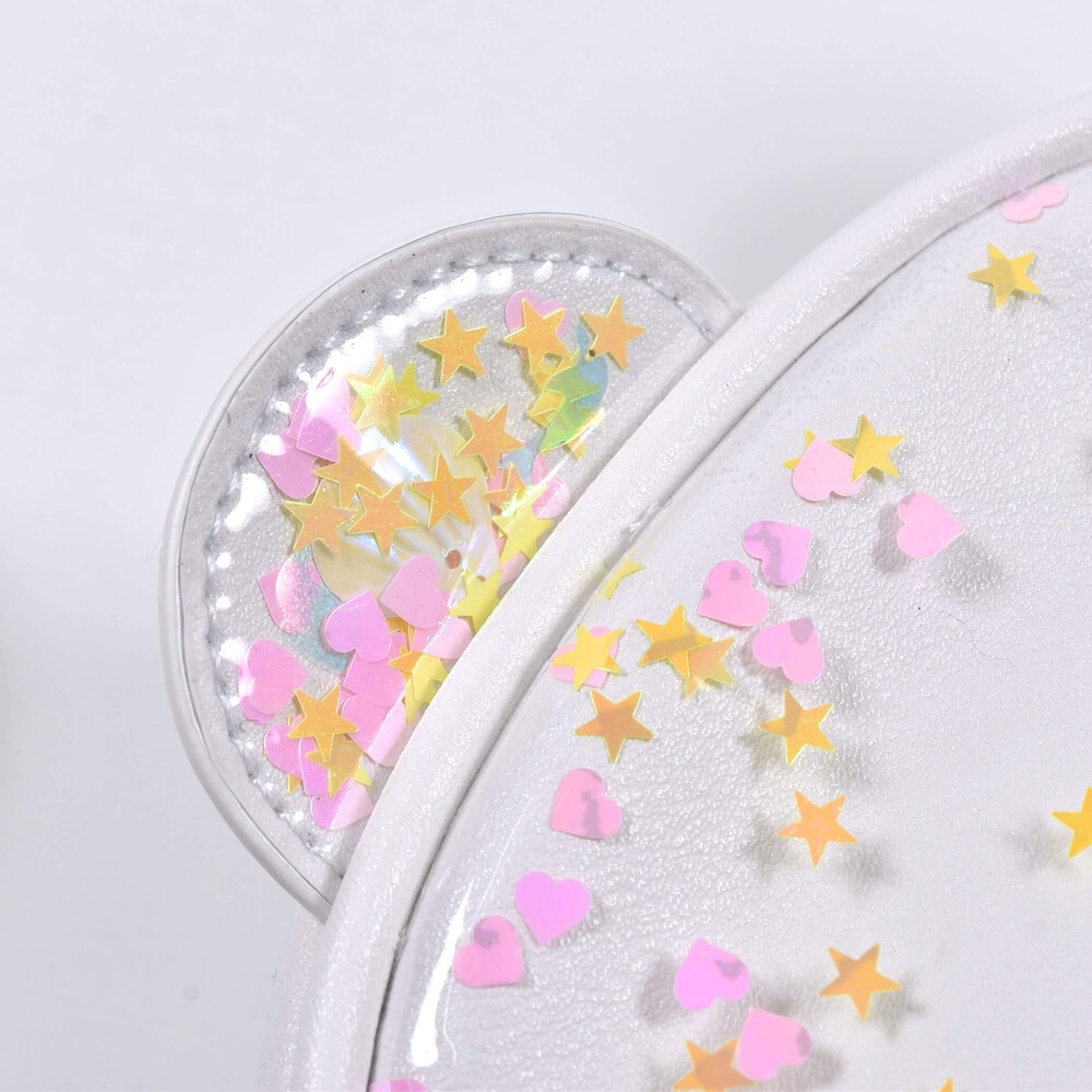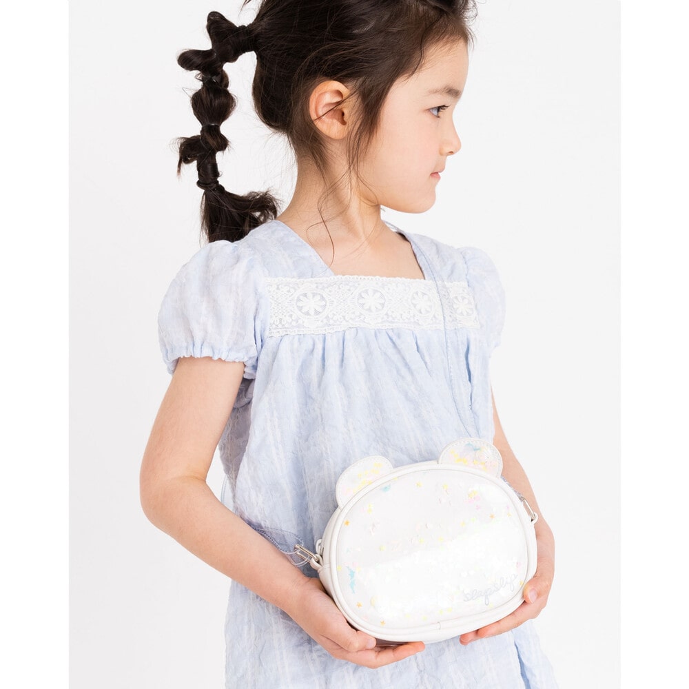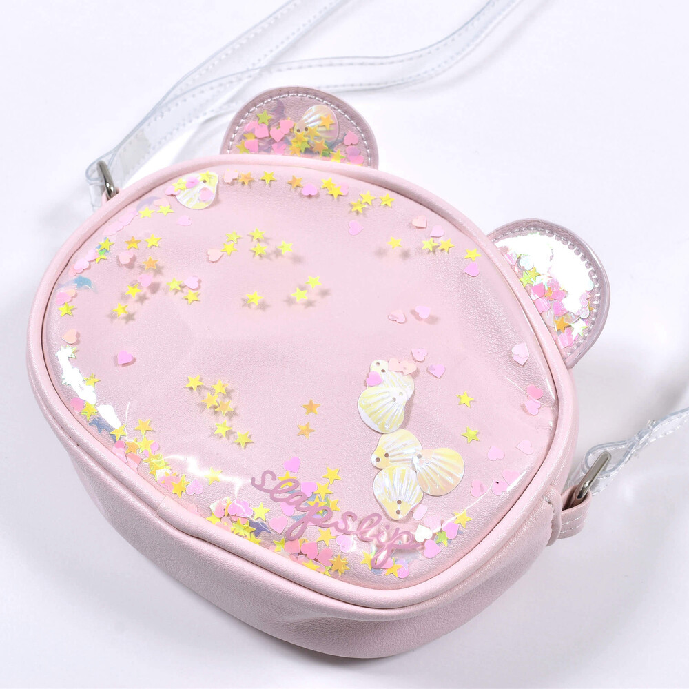 キラキラと動くフレーク可愛らしい女の子用ポシェット。