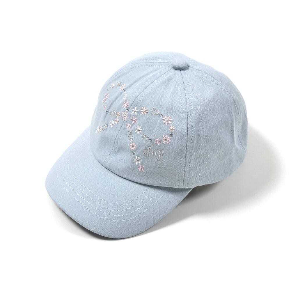フロント部分にほどこしたリボンの刺しゅうがキュートなキャップ。