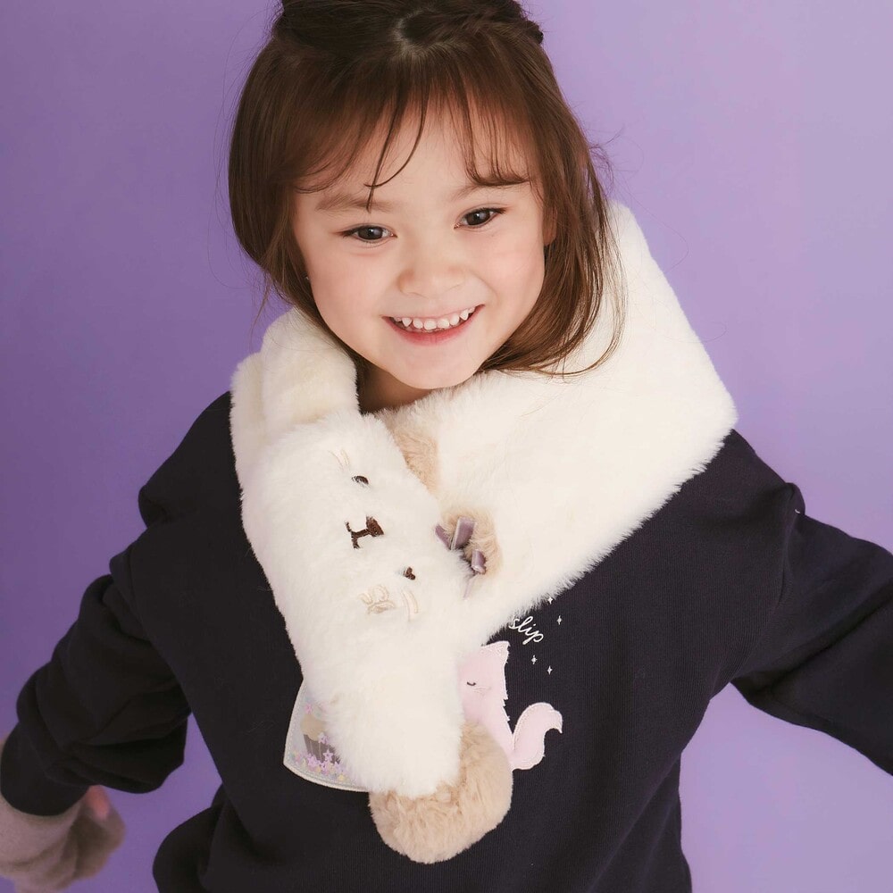 やわらかな肌ざわりのファー素材で首元をしっかり包み込み、見た目にも可愛く、触れるたびにキュンとときめくアイテムです。