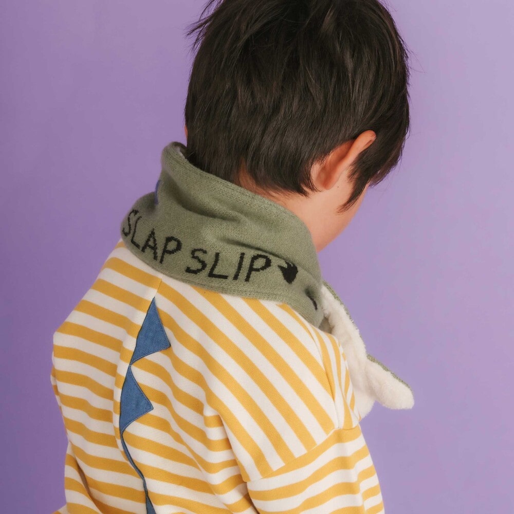 自分から首に巻きたくなるような遊び心のあるデザインで男の子がワクワクするアイテムに仕上げました。