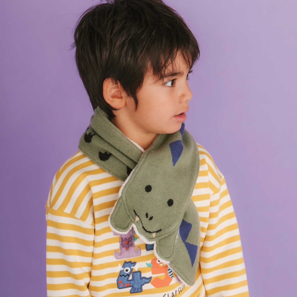 寒い冬のおでかけを楽しくしてくれる、男の子にぴったりのニットマフラー。