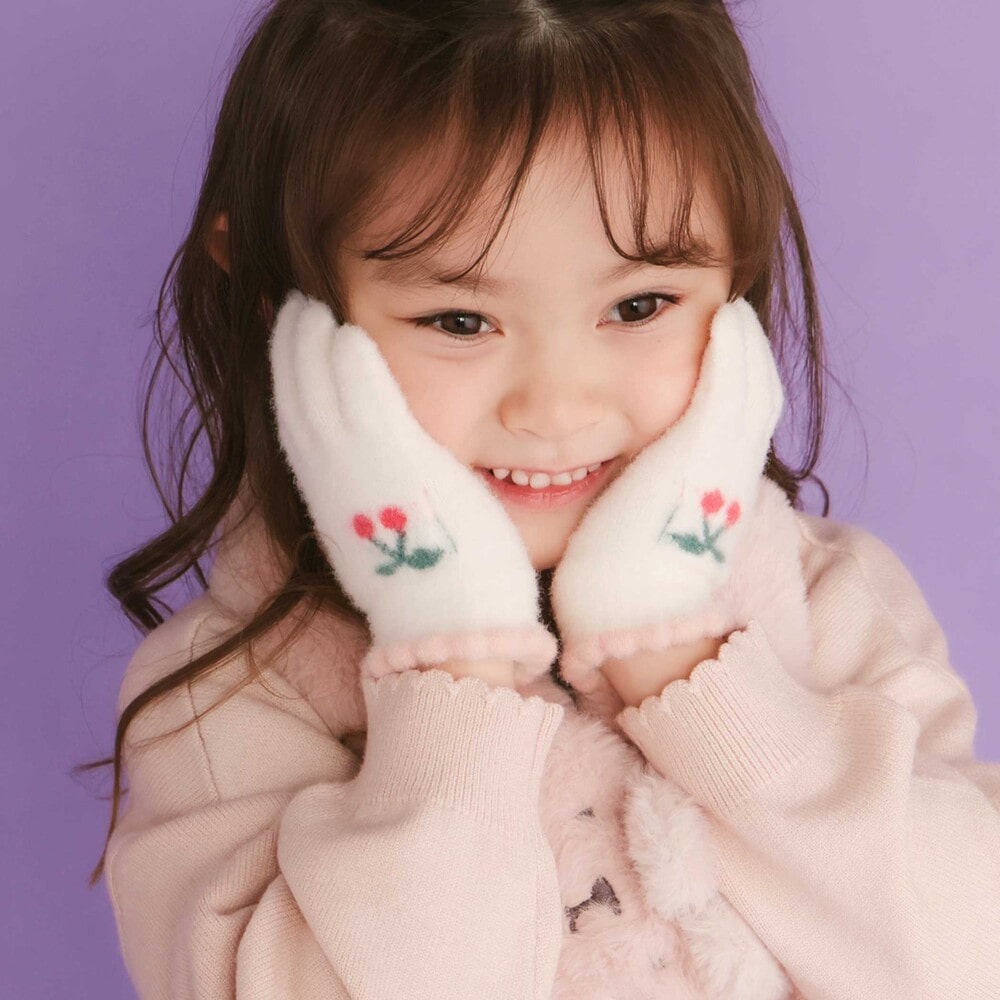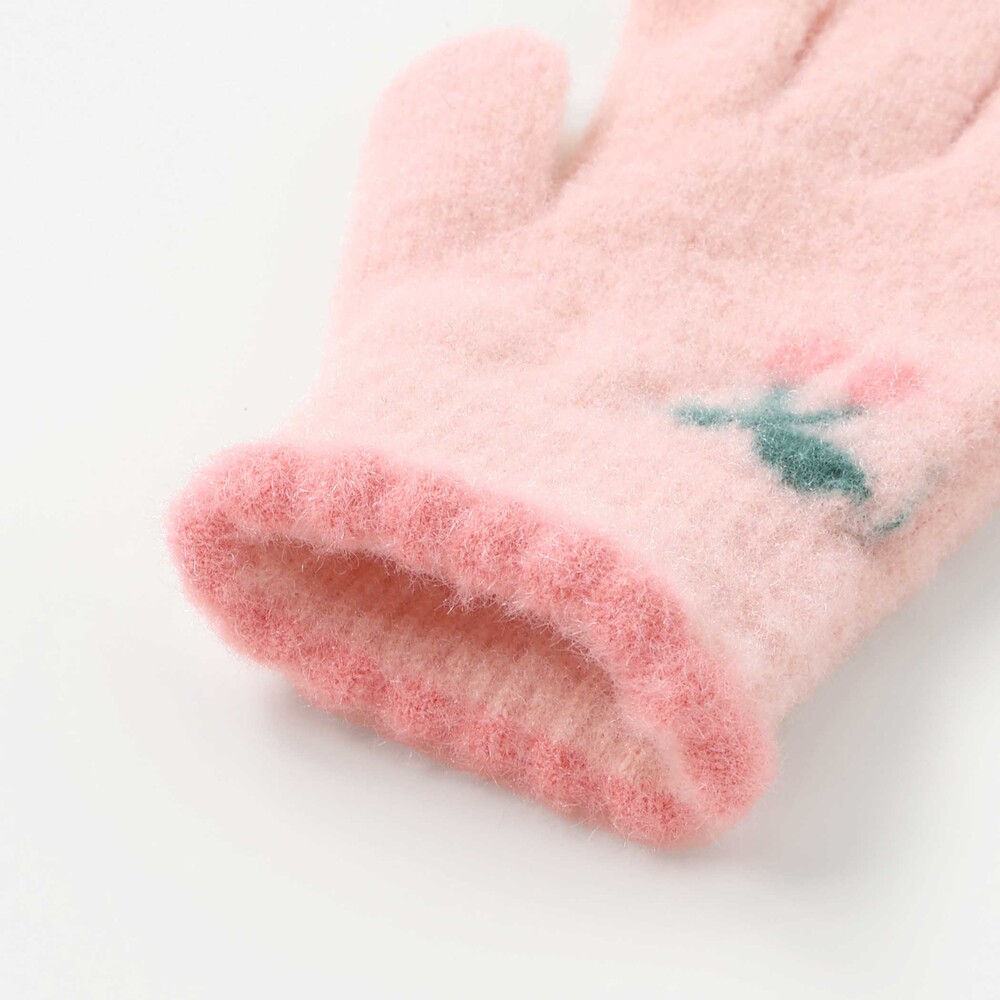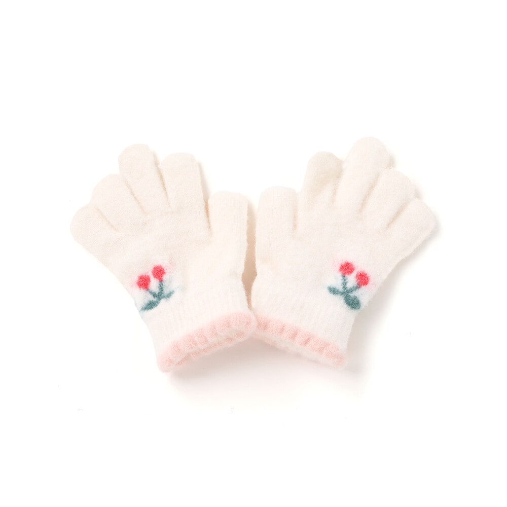 手の甲にはチェリーモチーフをあしらい、シンプルになりがちな冬小物に女の子らしいアクセントをプラス。