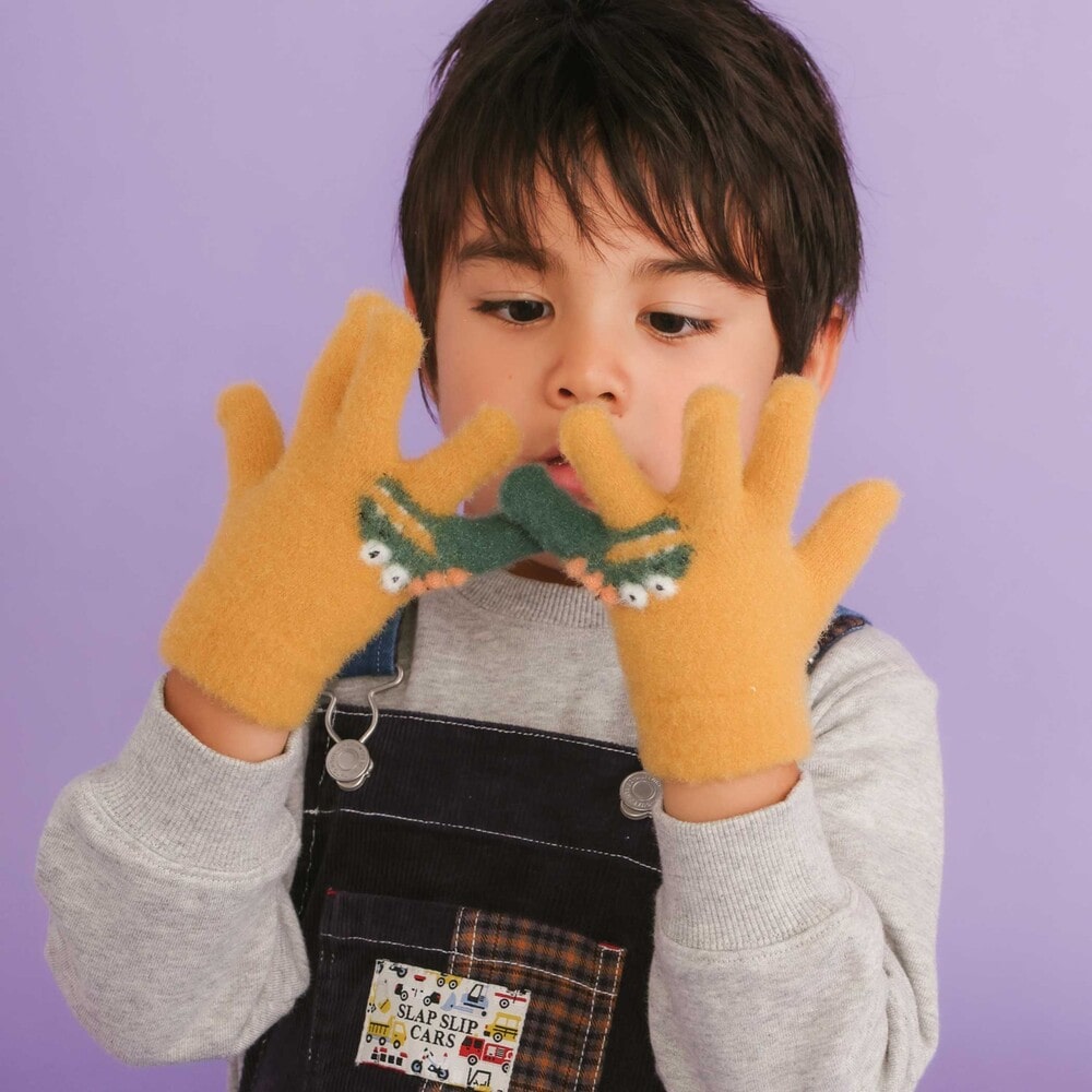 恐竜モチーフのインパクトあるデザインと、冬の必需品としての機能性を兼ね備えた、毎日活躍間違いなしの手袋に仕上げました。