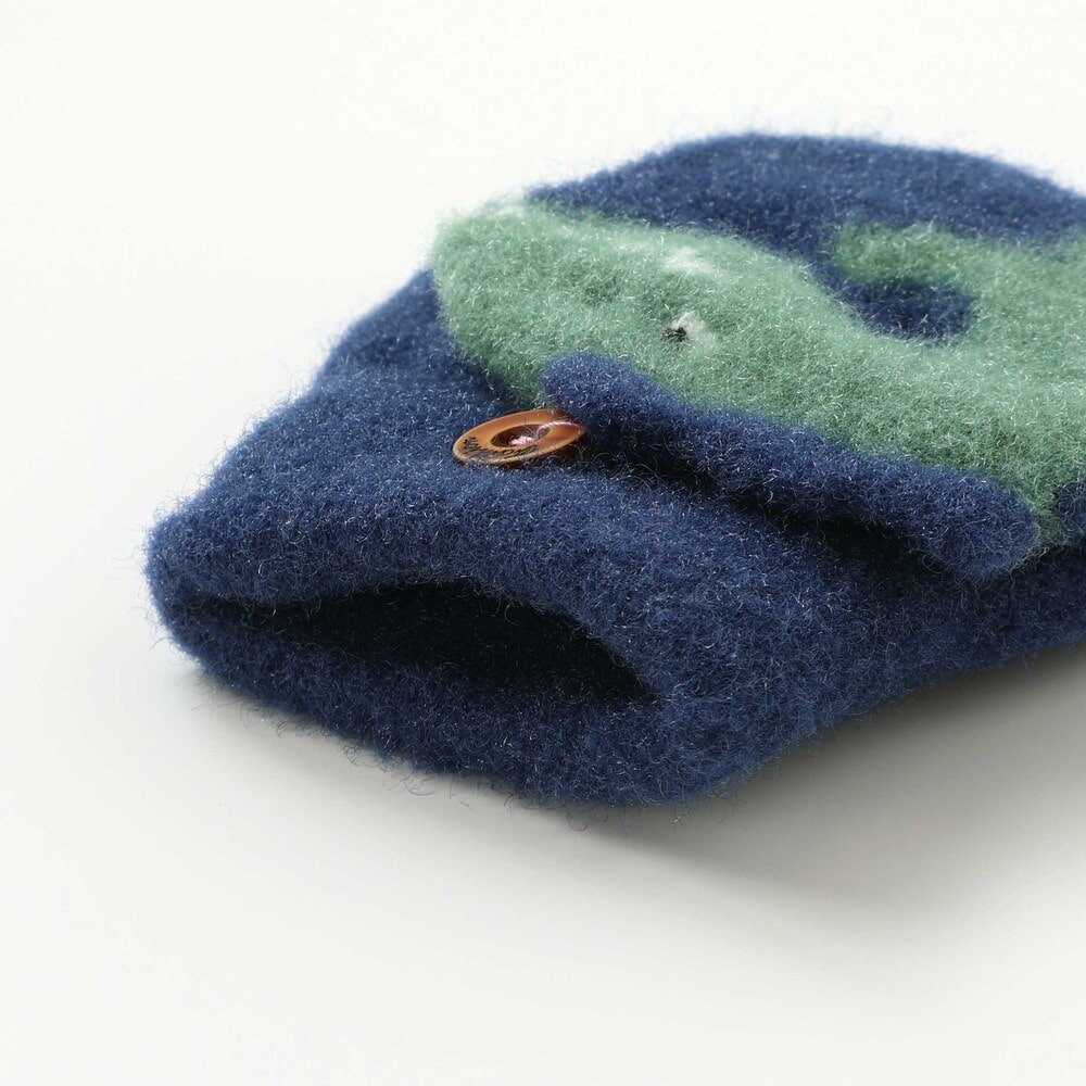 ミトン部分は手の甲のボタンで簡単に留められる仕様。使わないときもパタッと固定できるので邪魔にならず、遊びやすさも◎