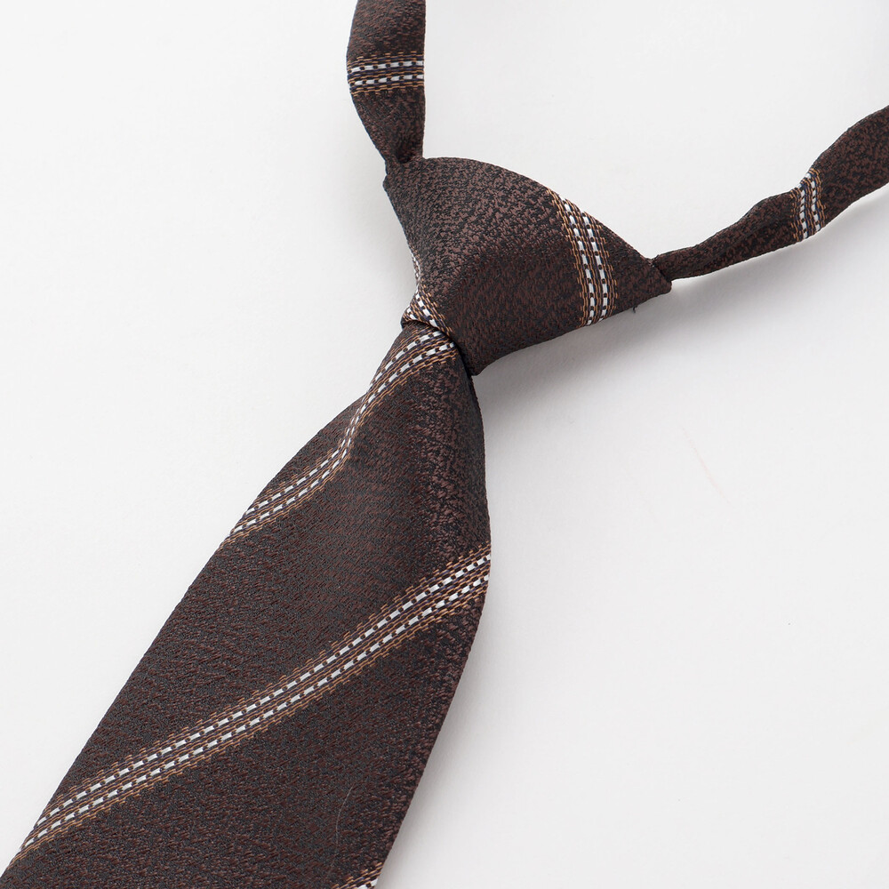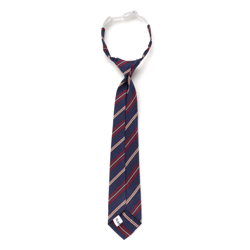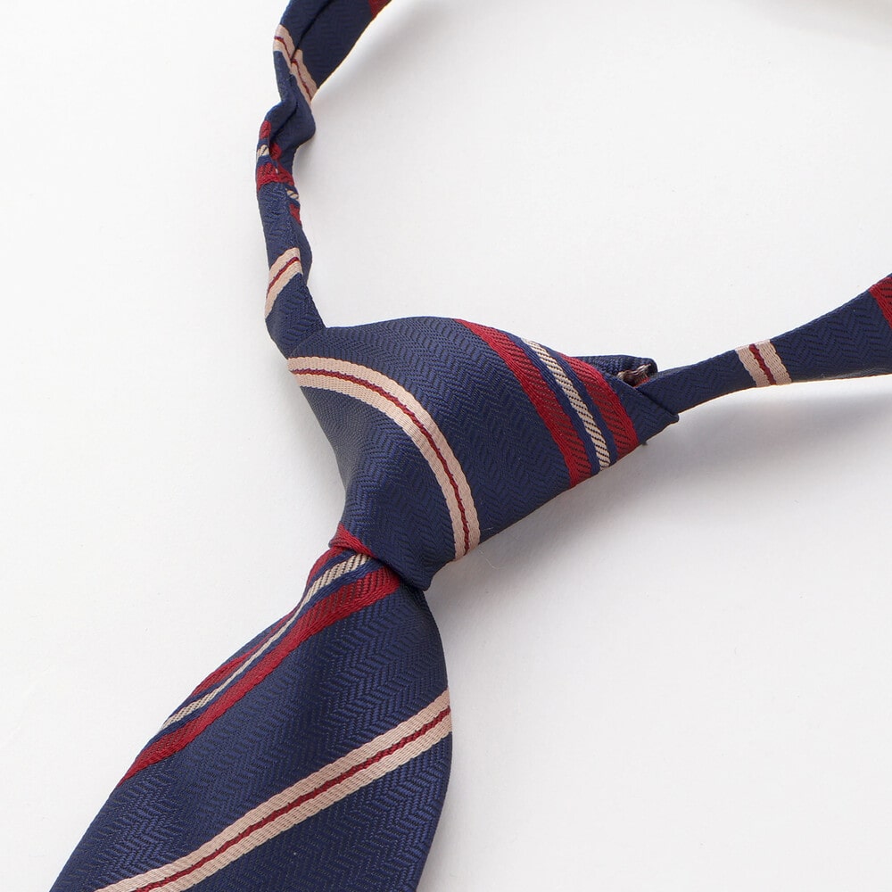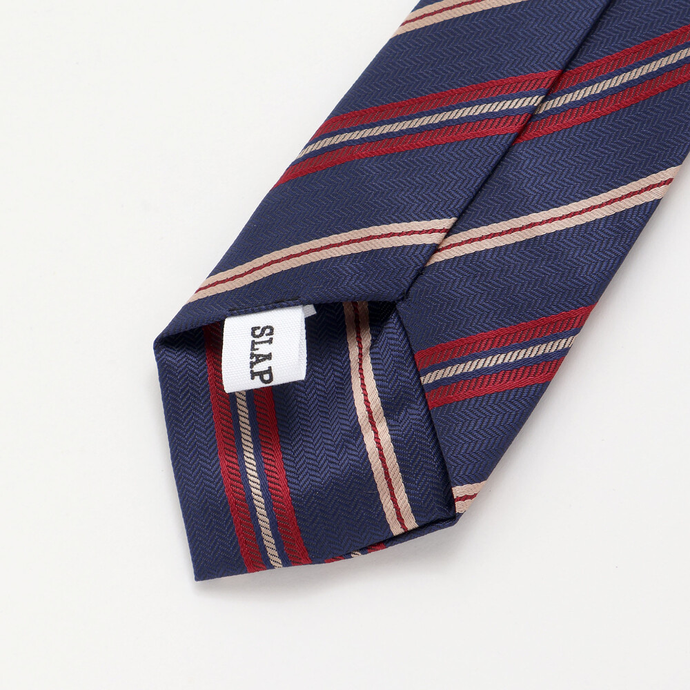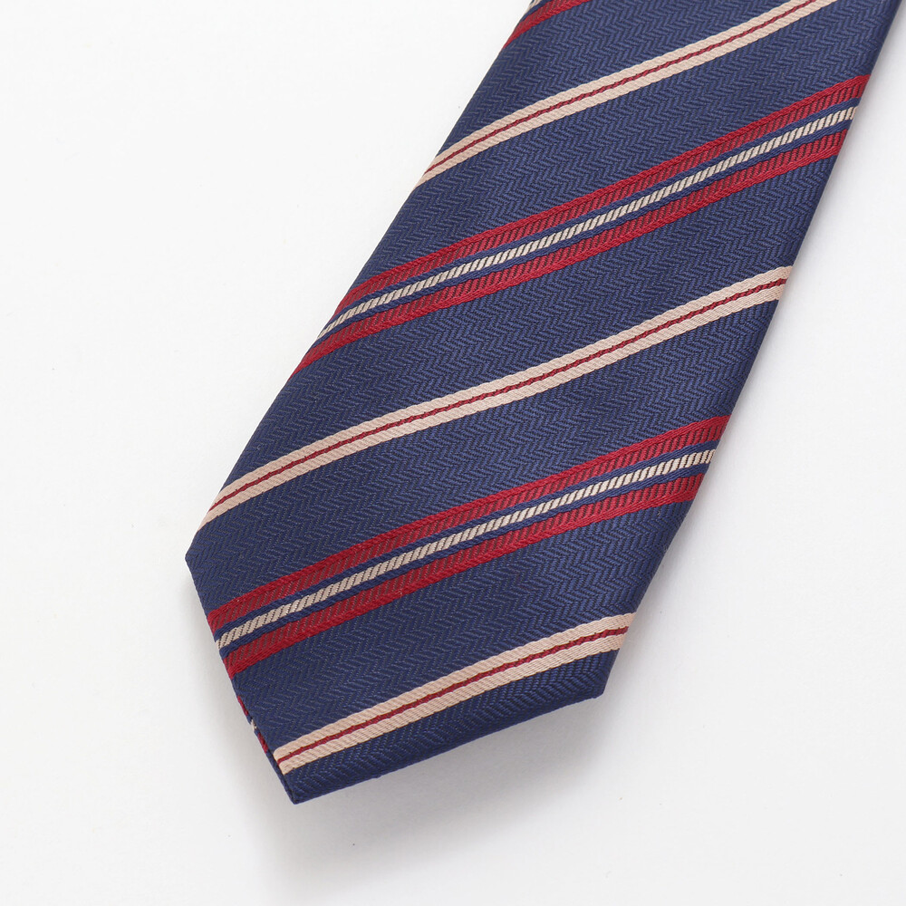 ネイビー系:エンジとベージュの細かな斜めストライプで、知的な印象に。