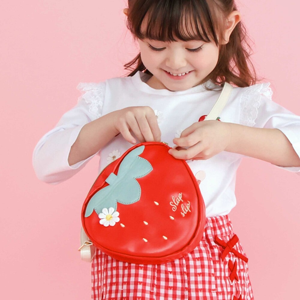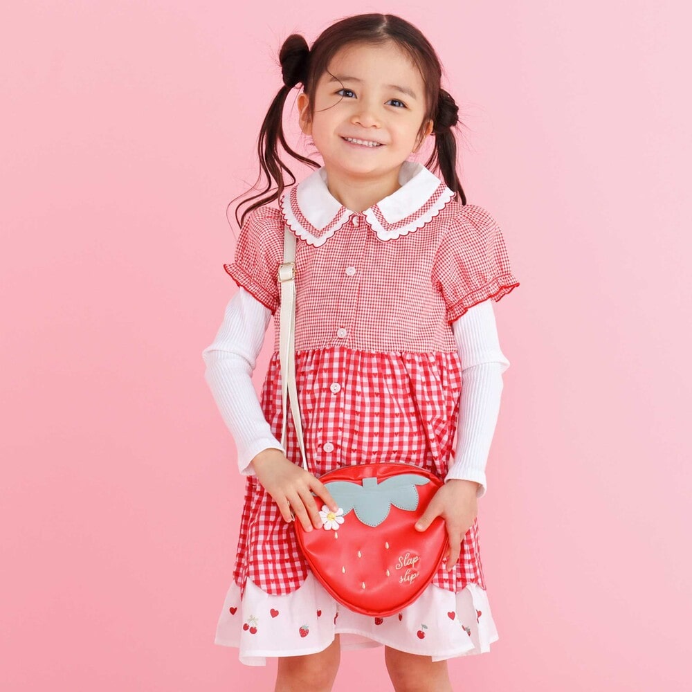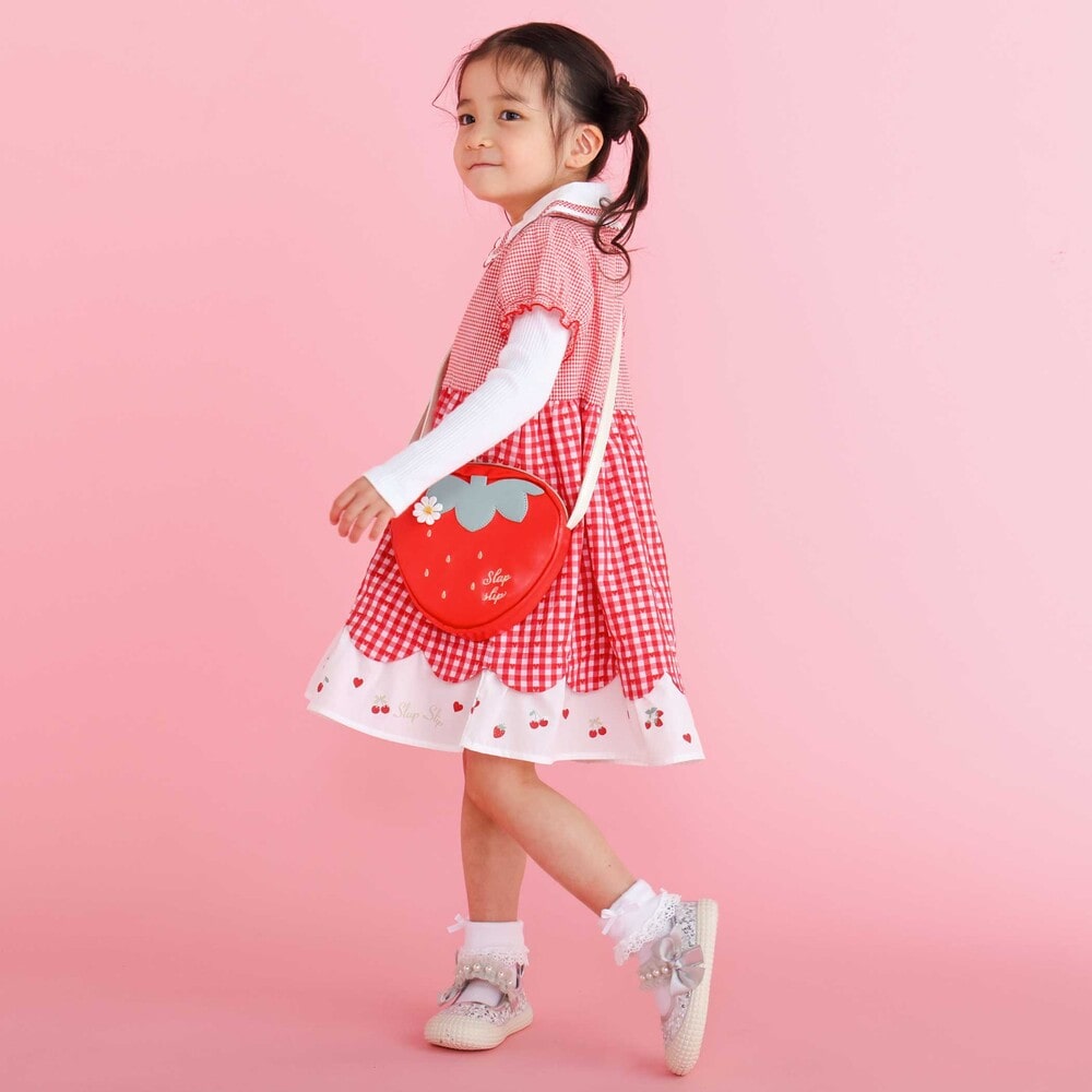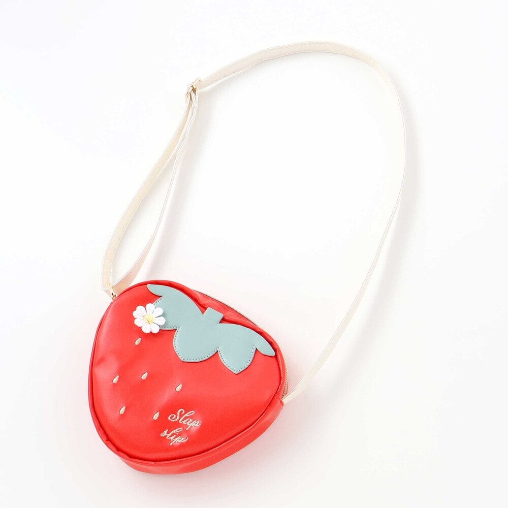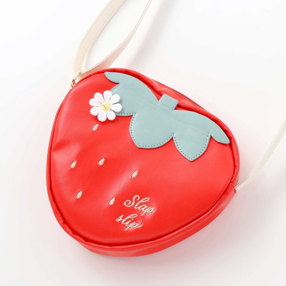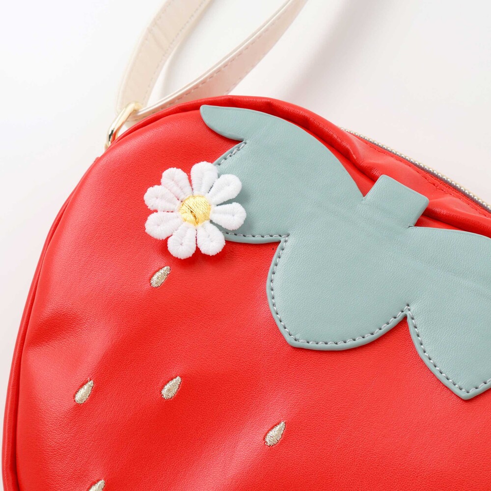絵本から飛び出してきたような、大きなイチゴモチーフが主役のポシェット。