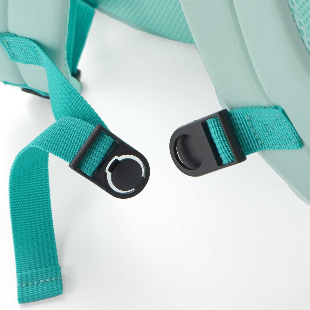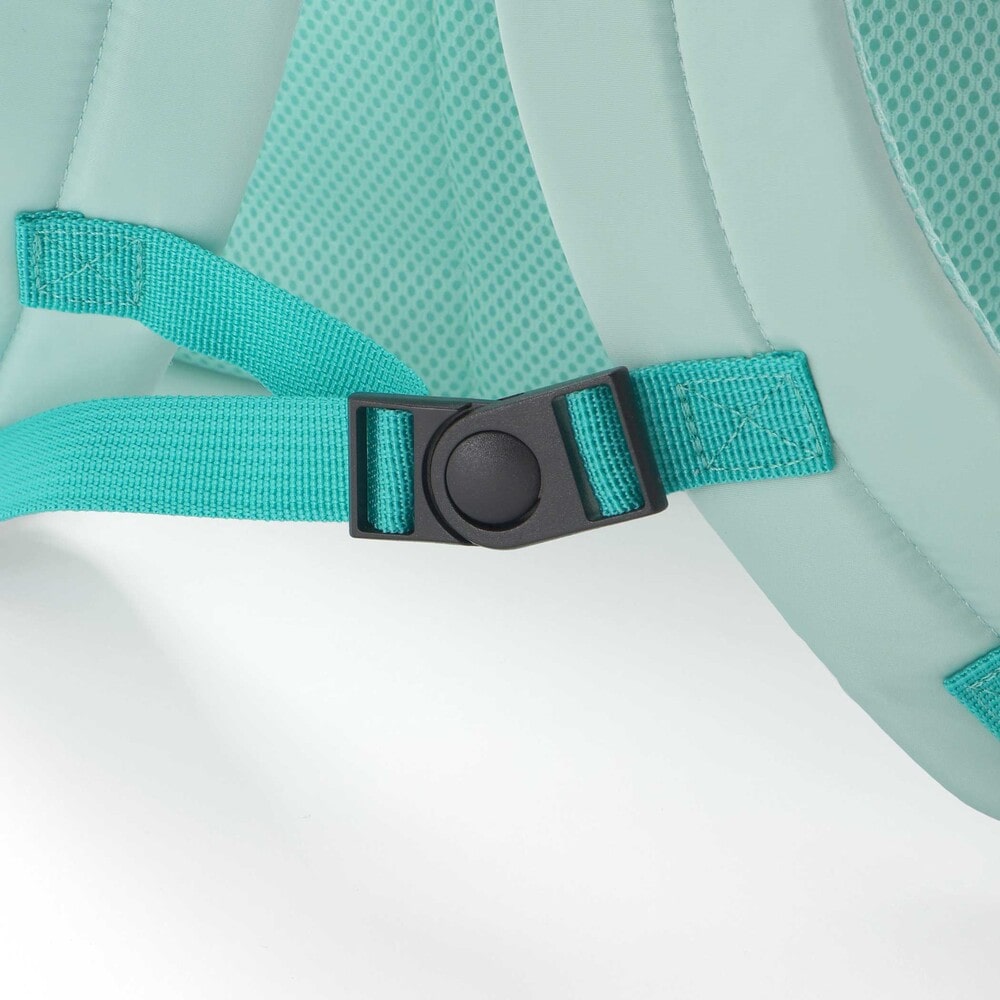 ショルダーベルトにはプッシュバックルを備え、ずれ落ちを防ぎながら安定した背負い心地をサポート。