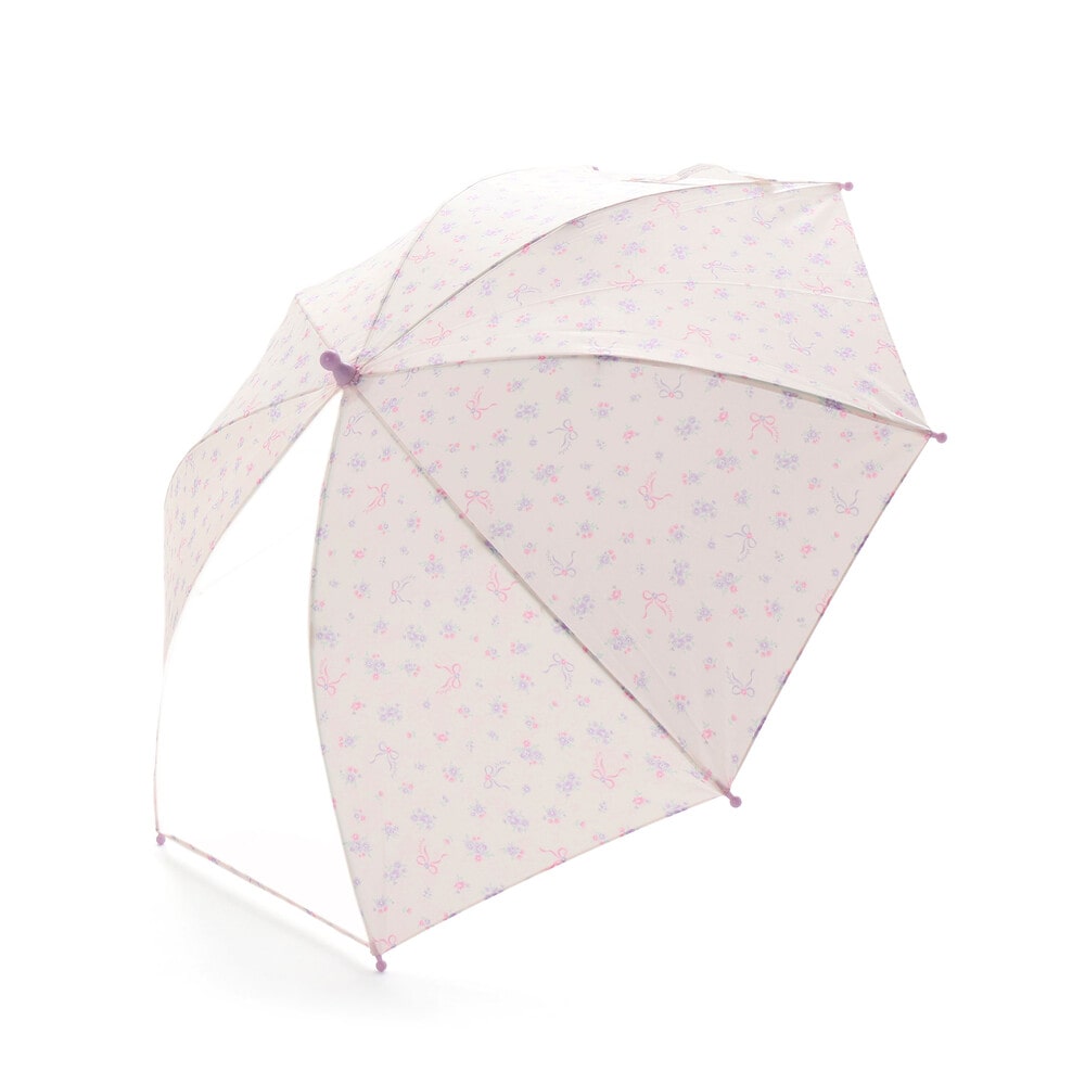 ピンク系(お花):優しいピンクのカラーにパープルのお花やリボン。ふんわりフェミニンなプリント柄にキュン