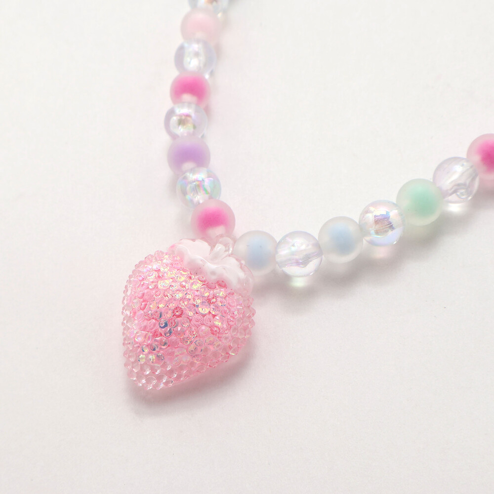ピンクは、甘くてポップなイチゴモチーフがポイントで、ガーリーなスタイルにぴったりです。