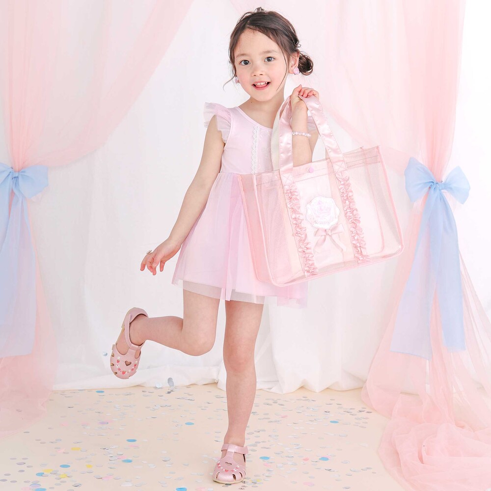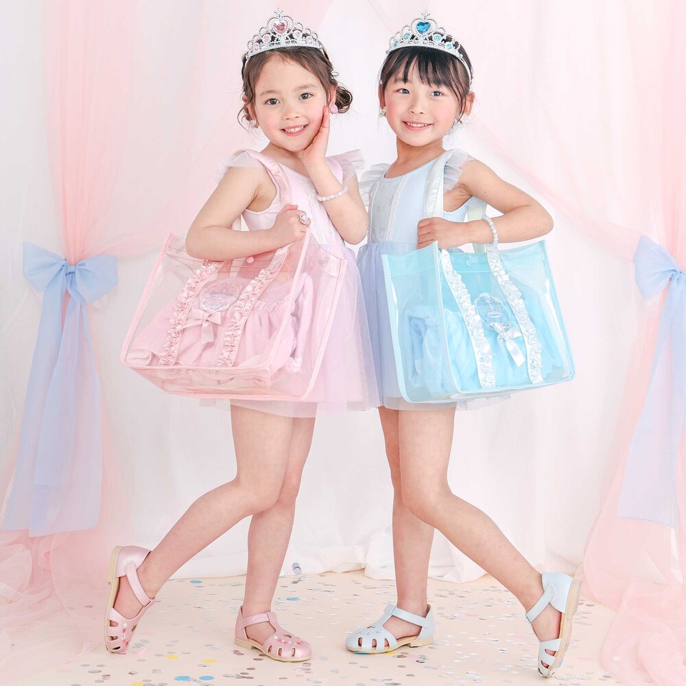 リボンやフリル、王冠など、女の子の「大好き」をぎゅっと詰め込んだプールバッグ。
