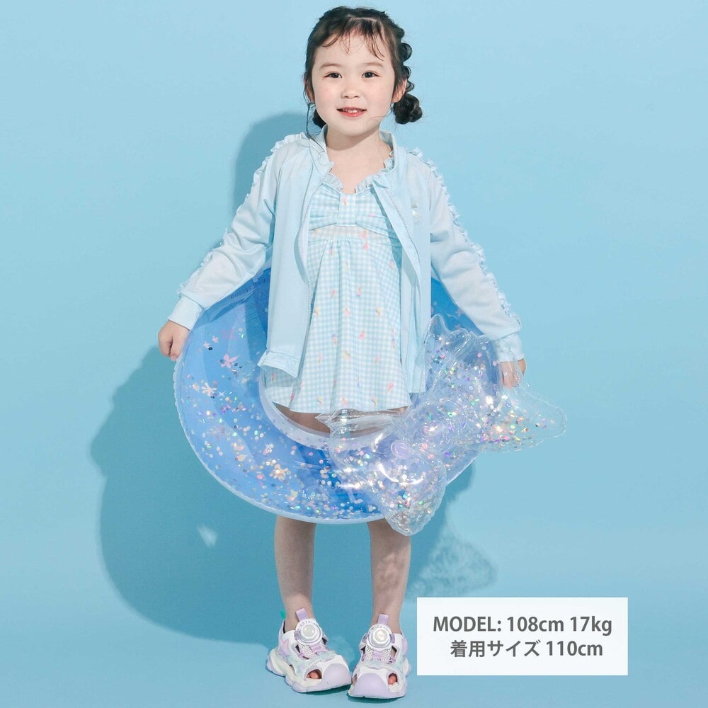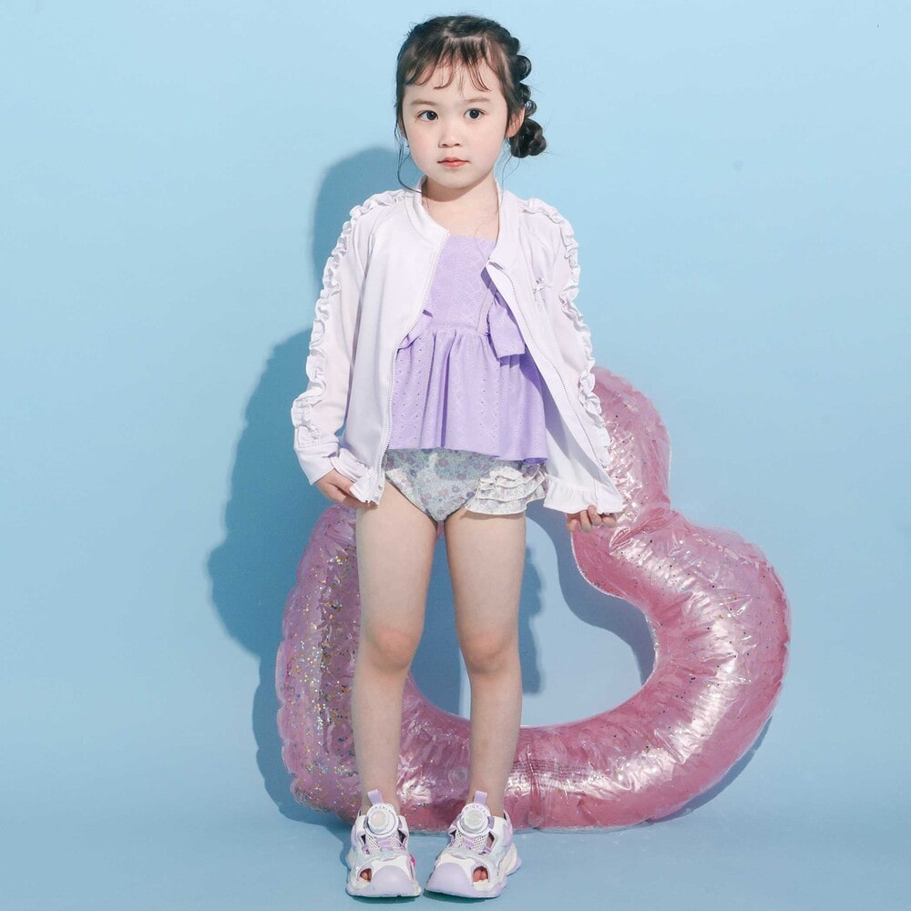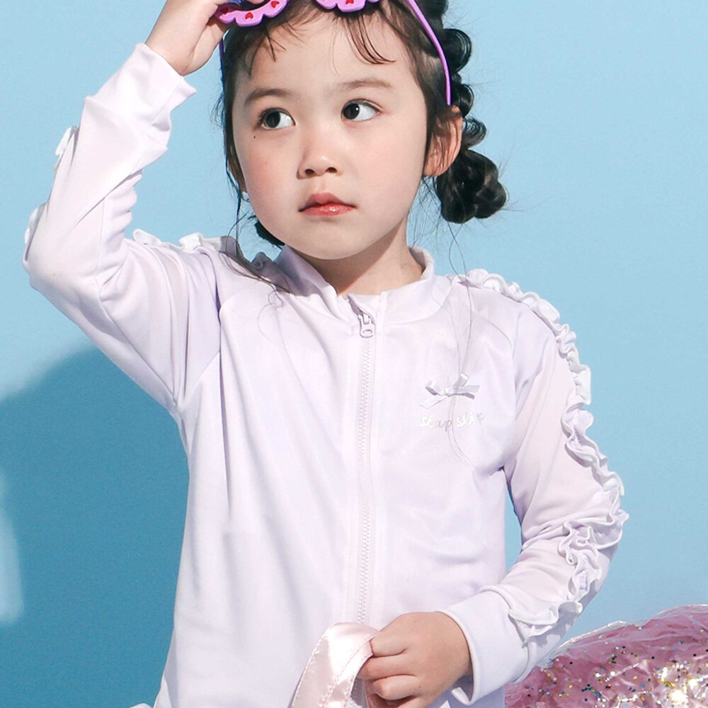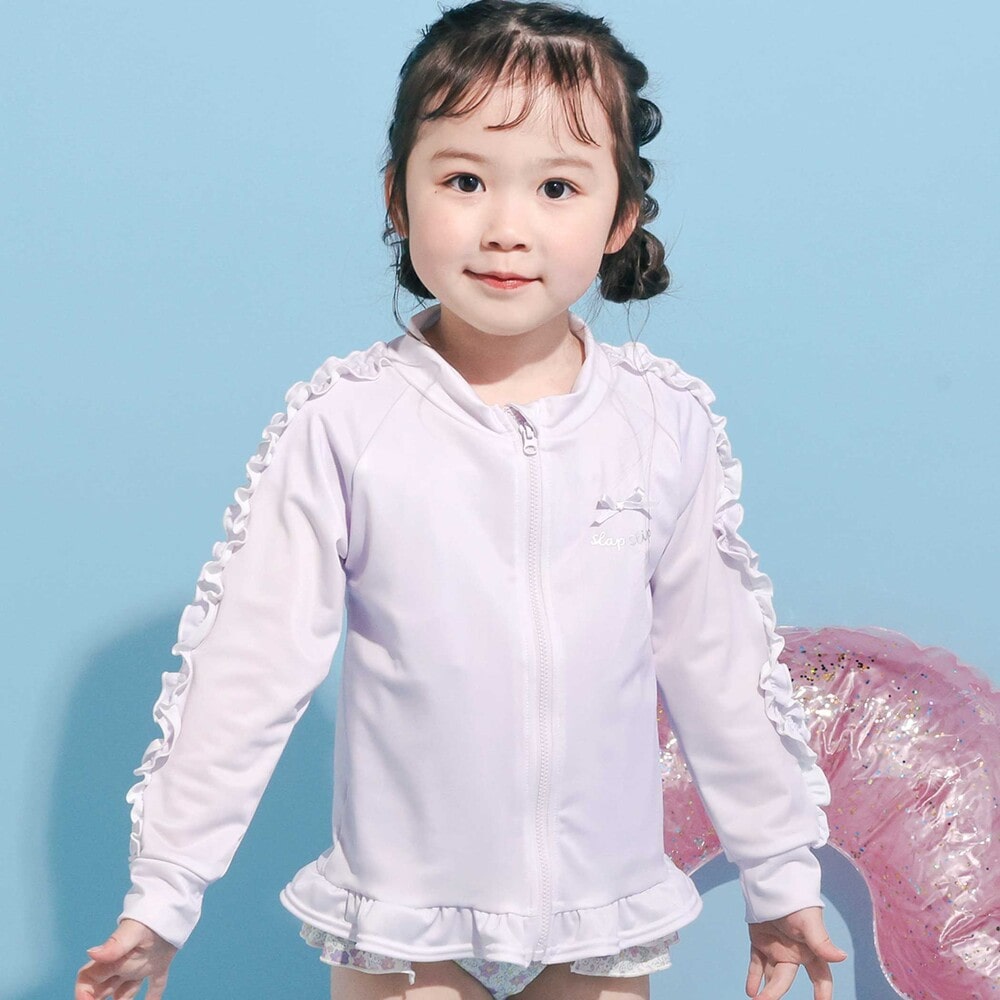 フリルや裾のデザインが愛らしい、女の子用ラッシュガード。