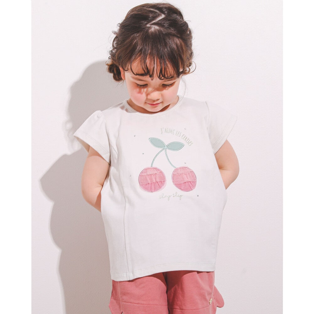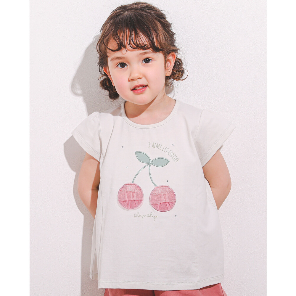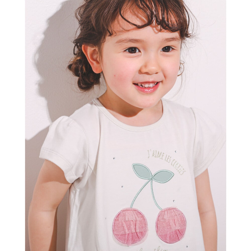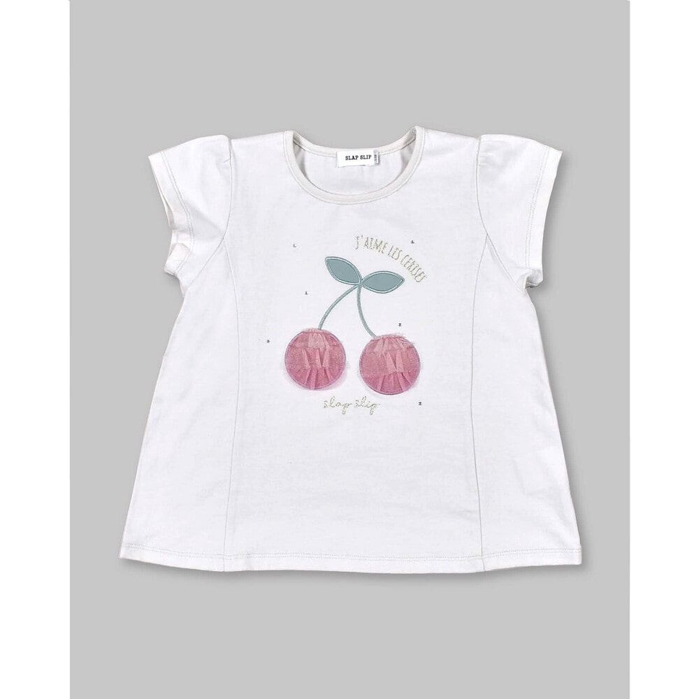大きなチェリーモチーフがキュートな半袖Tシャツ。