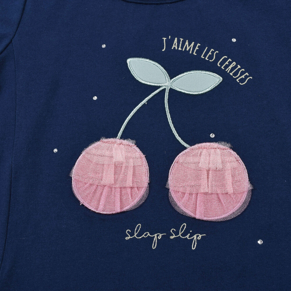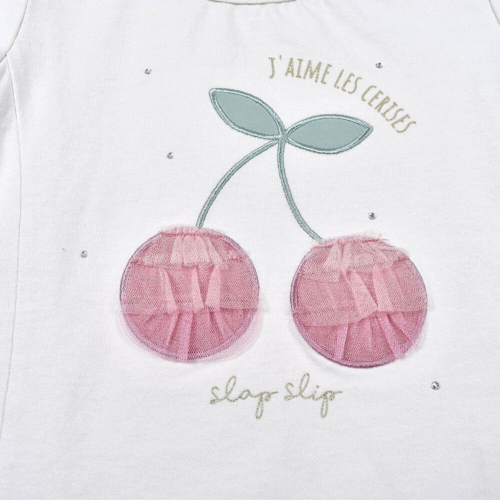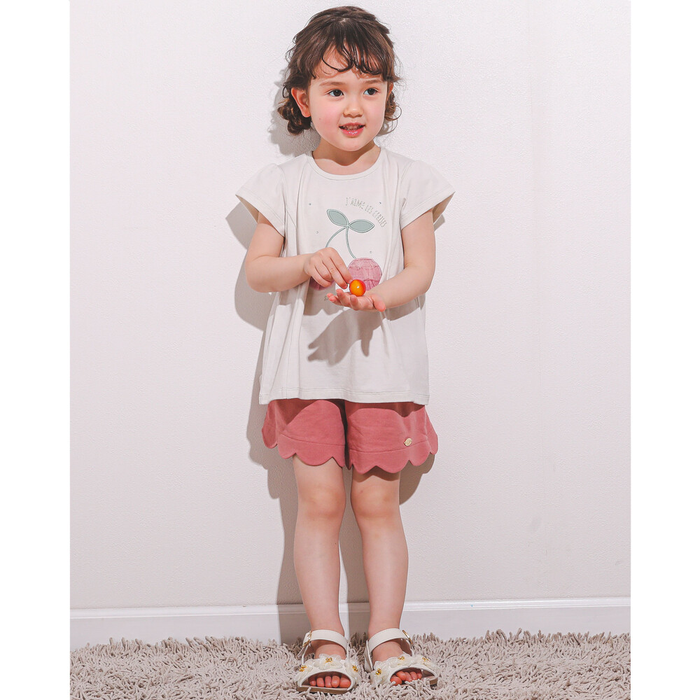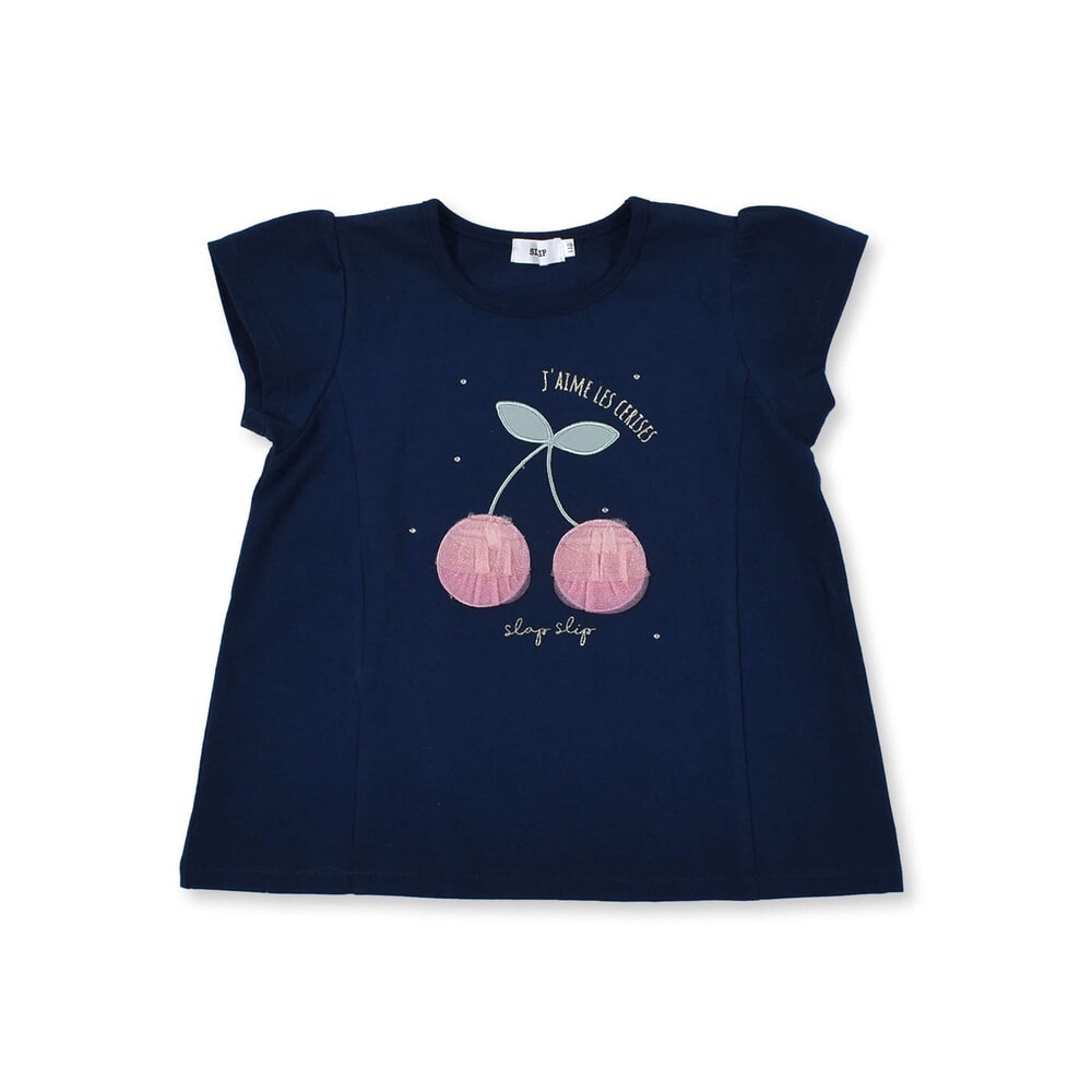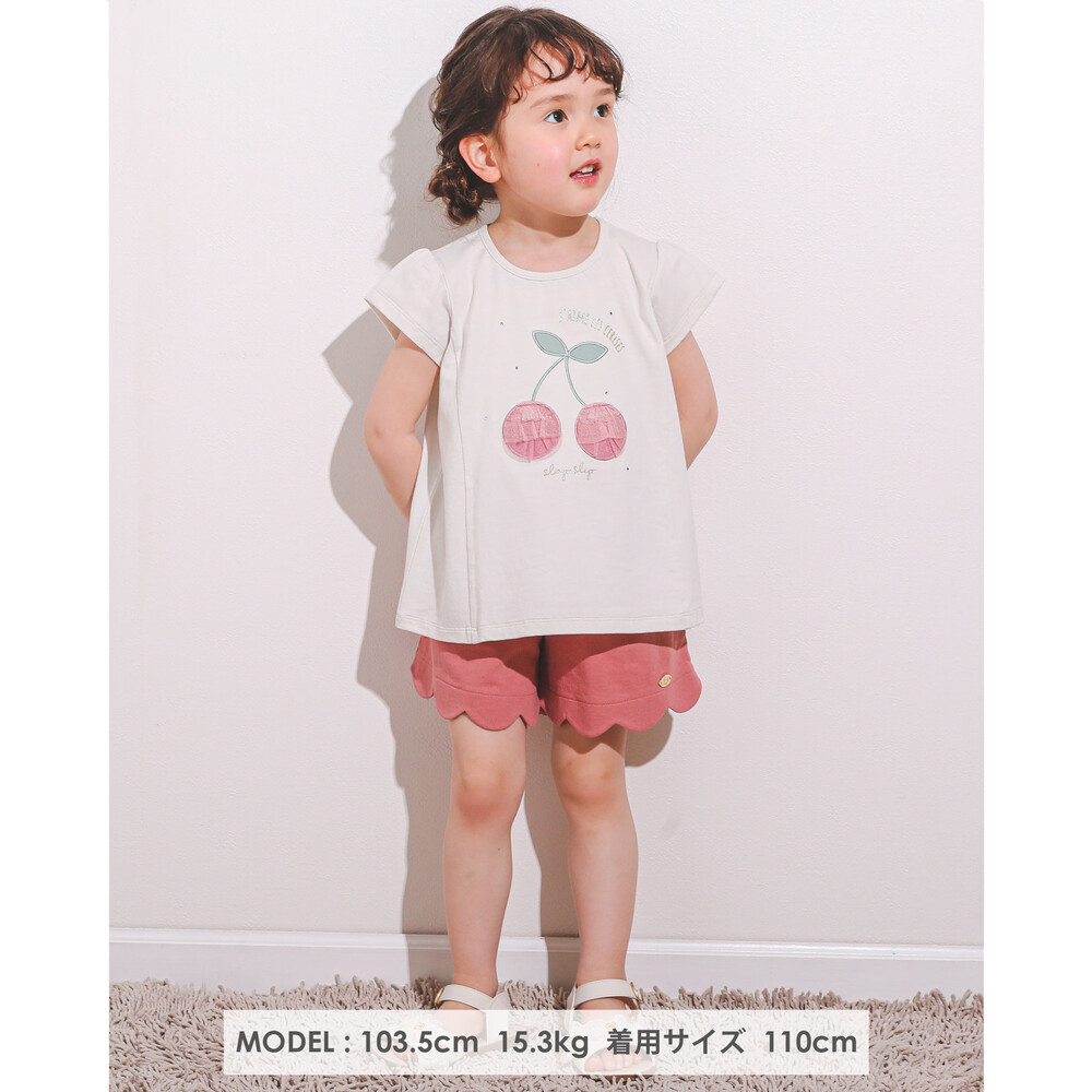 大きなチェリーモチーフがキュートな半袖Tシャツ。