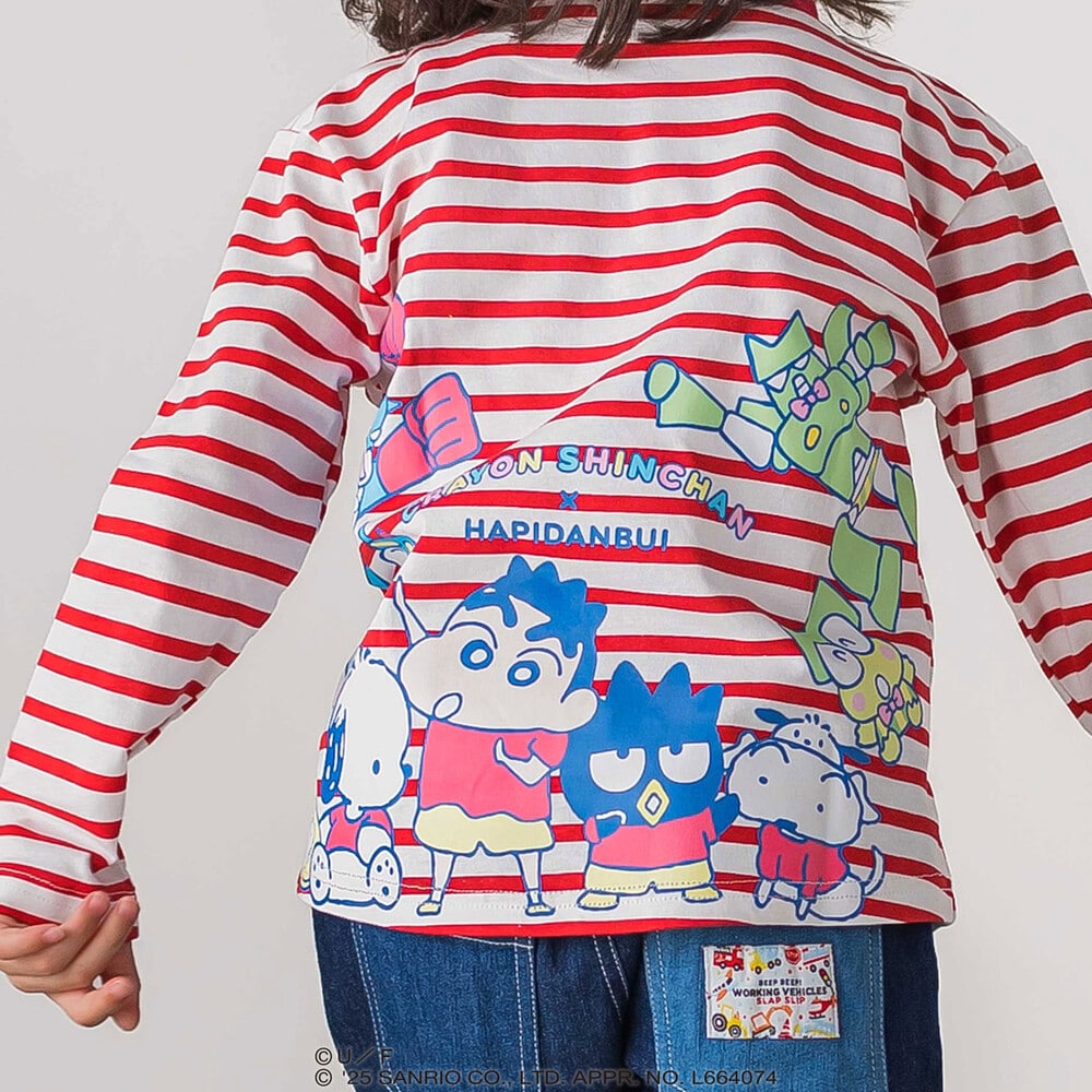 さらにバックプリントには、“はぴだんぶい”のメンバーたちがしんちゃんたちの衣装を着たり、モチーフを身につけてたり、大集合!