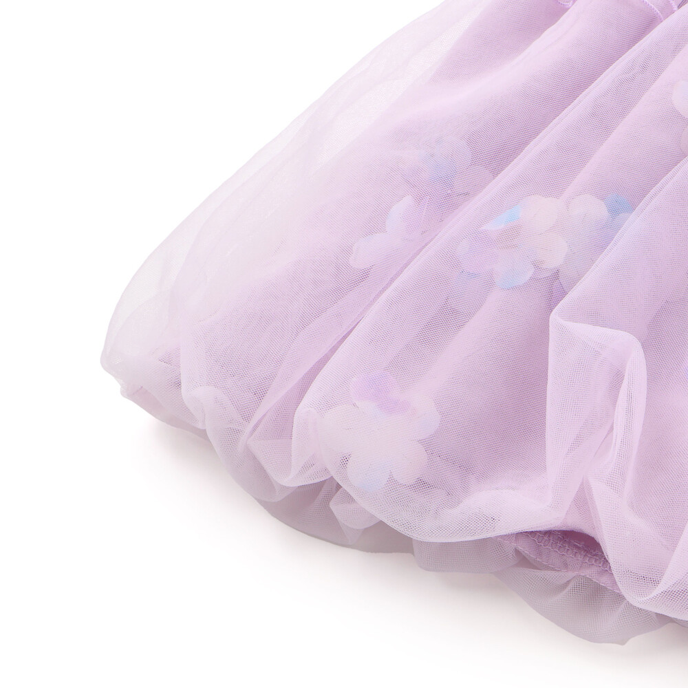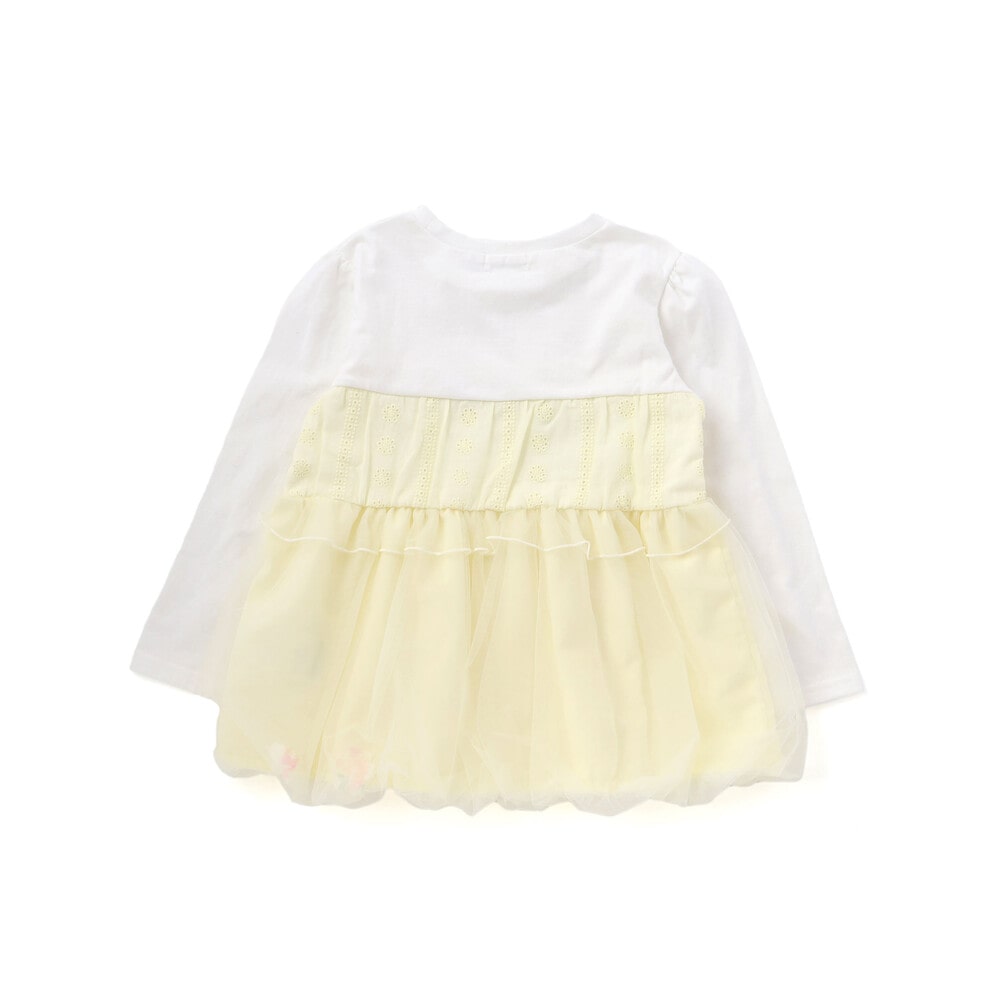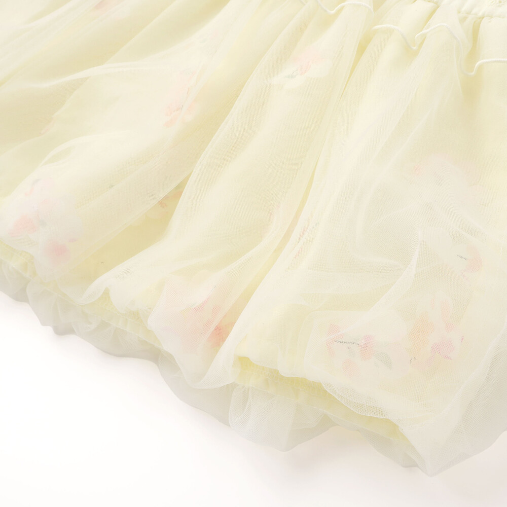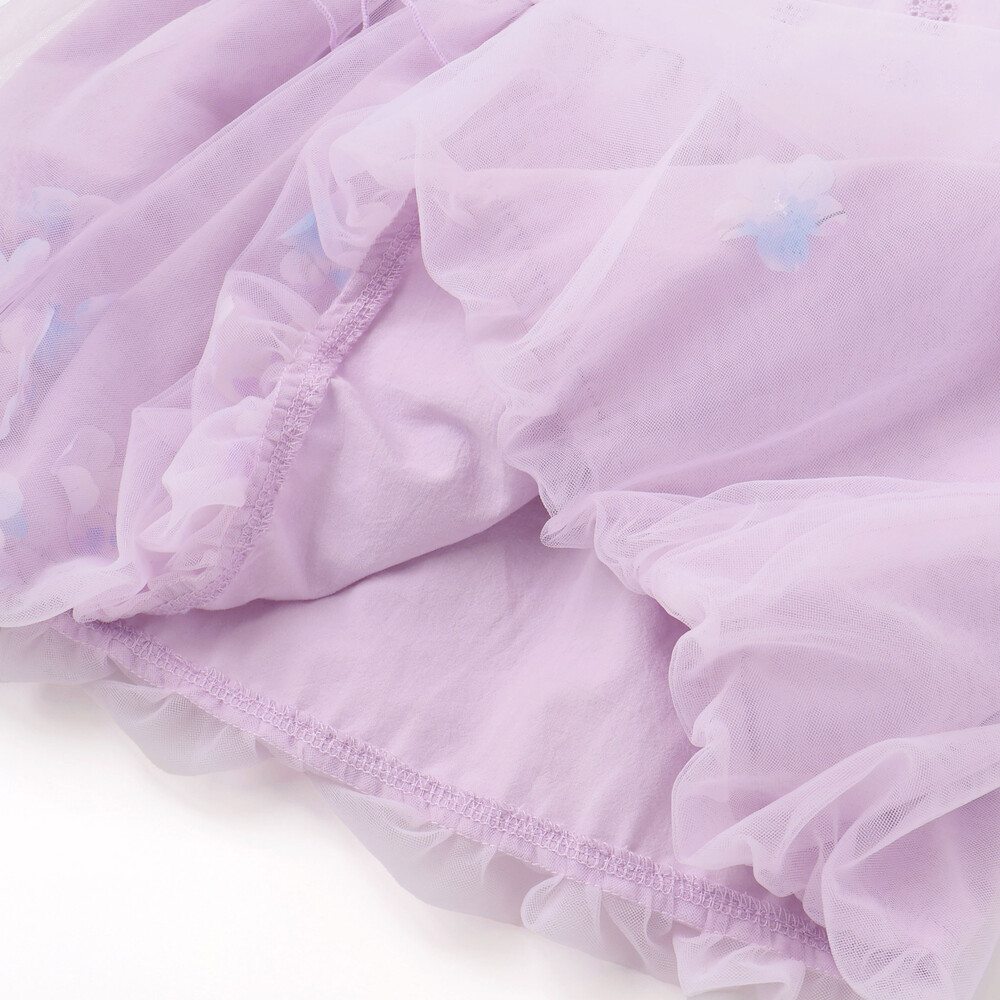 切り替え下にはチュールのフリルを重ね、ふんわりと広がるシルエットを演出しています。