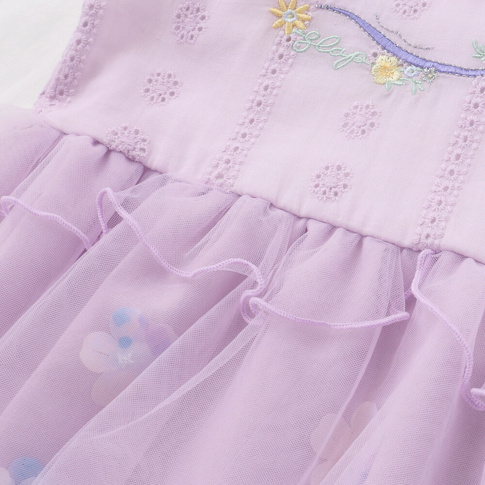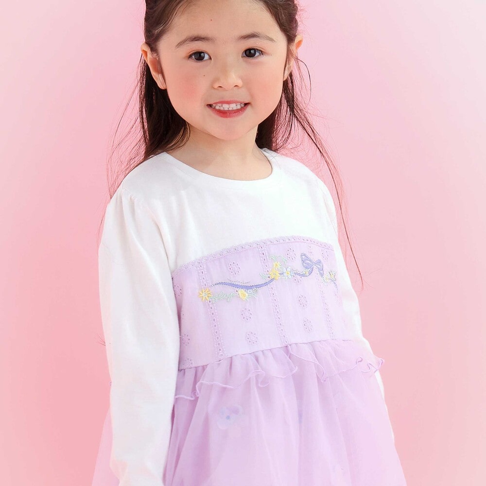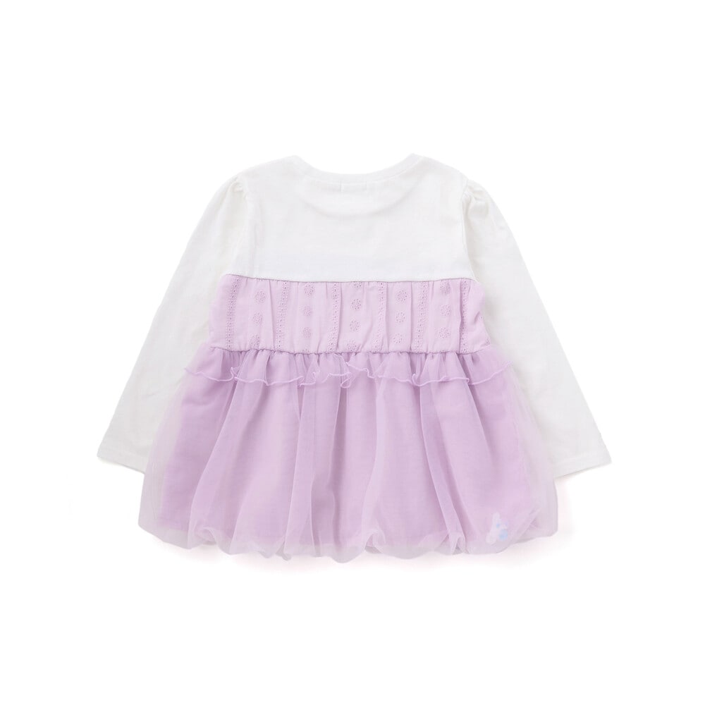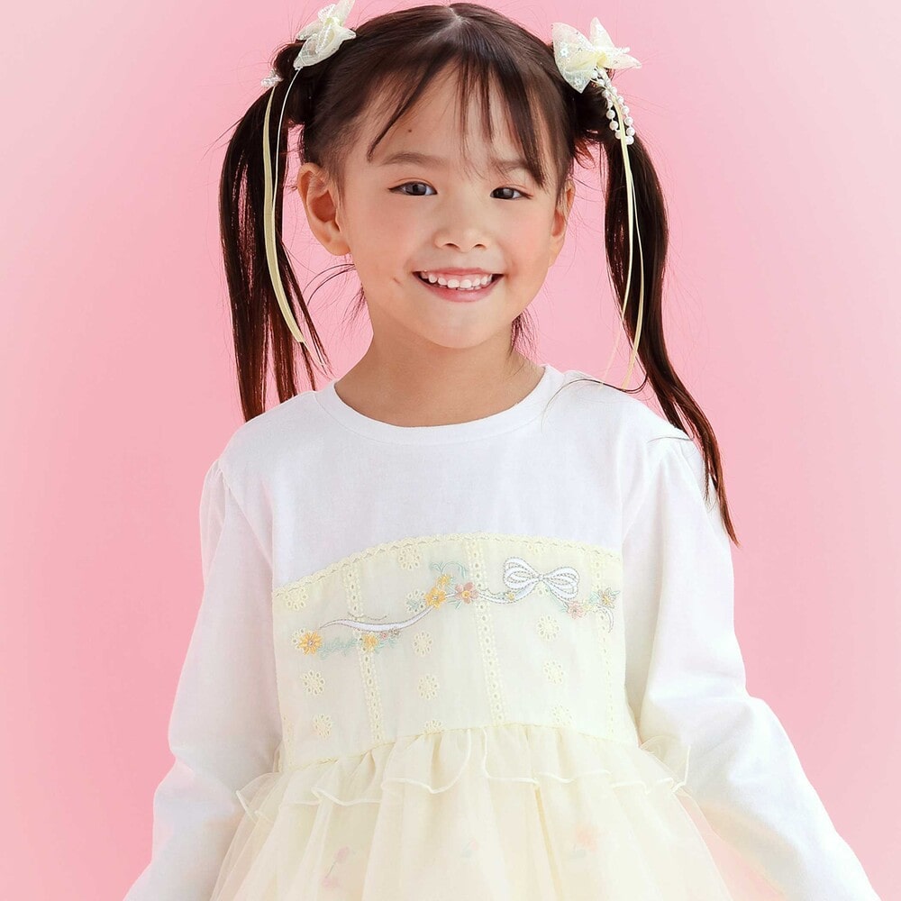 切り替え下にはチュールのフリルを重ね、ふんわりと広がるシルエットを演出しています。