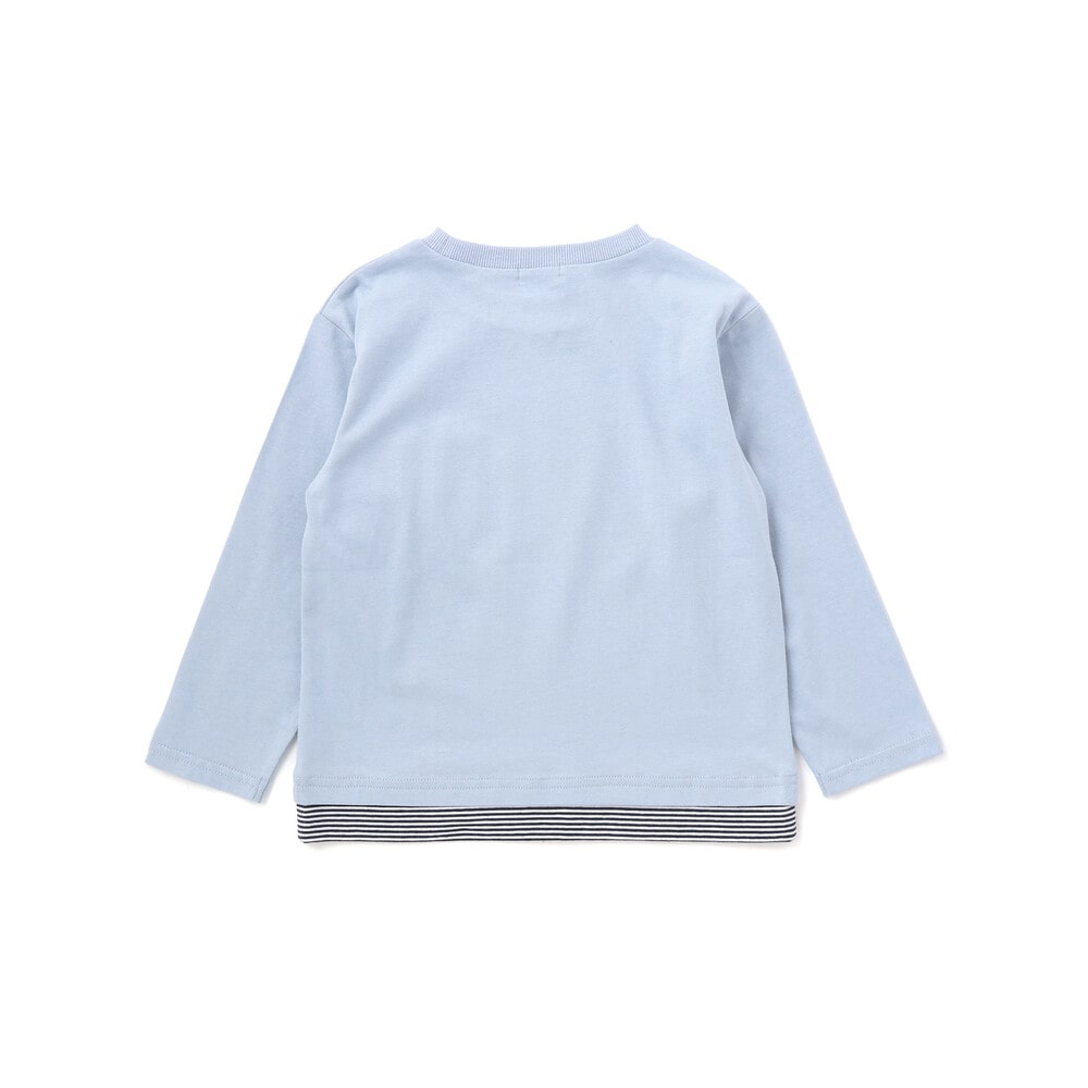 カラーごとに異なる雰囲気が楽しめる、レイヤード風デザインの男の子用長袖Tシャツ。