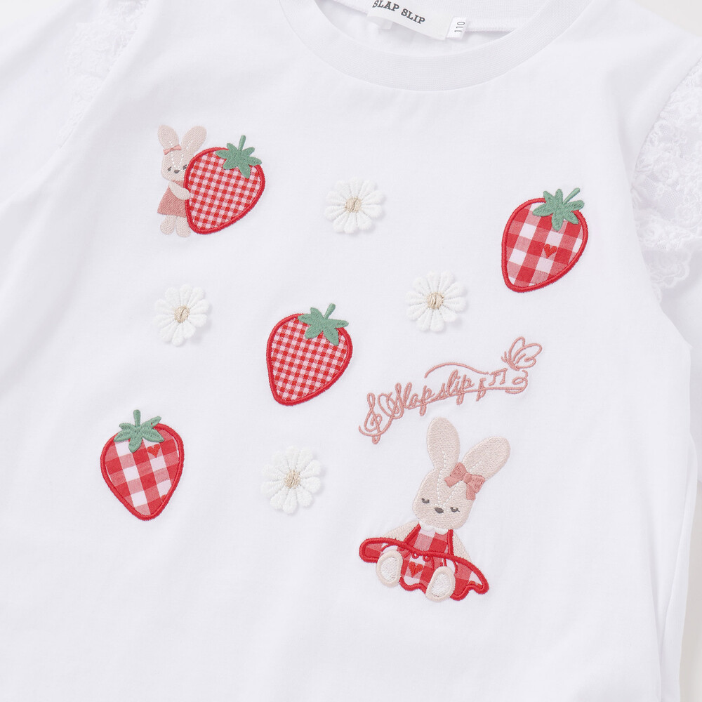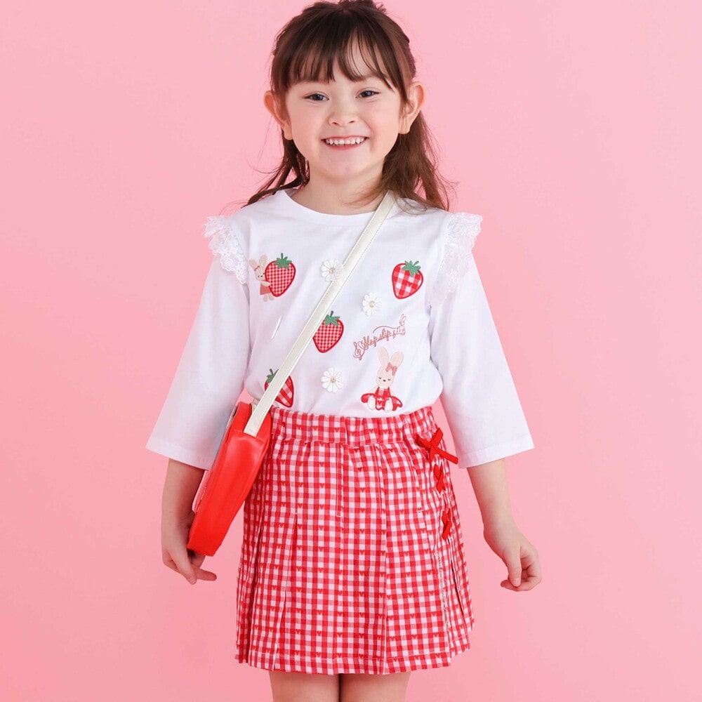 フロントには大きな赤いイチゴが散りばめられ、ひと目で気分が華やぐデザインに。