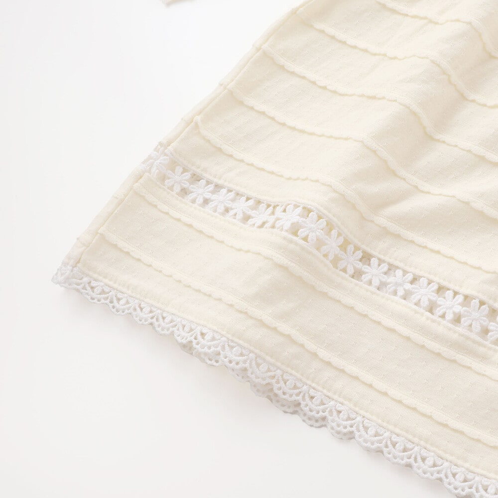 裾はふんわり広がるフレアシルエットになっており、レースをあしらうことで繊細な透け感と軽やかさをプラス。