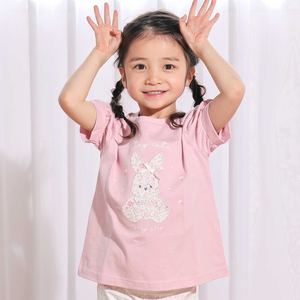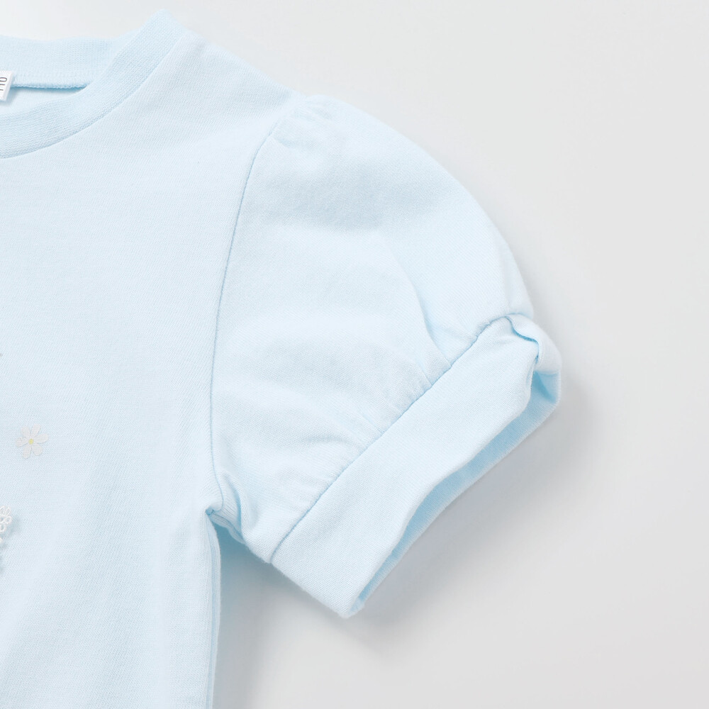 ふんわりとしたパフ袖が女の子らしい、思わず目をひく半袖Tシャツ。