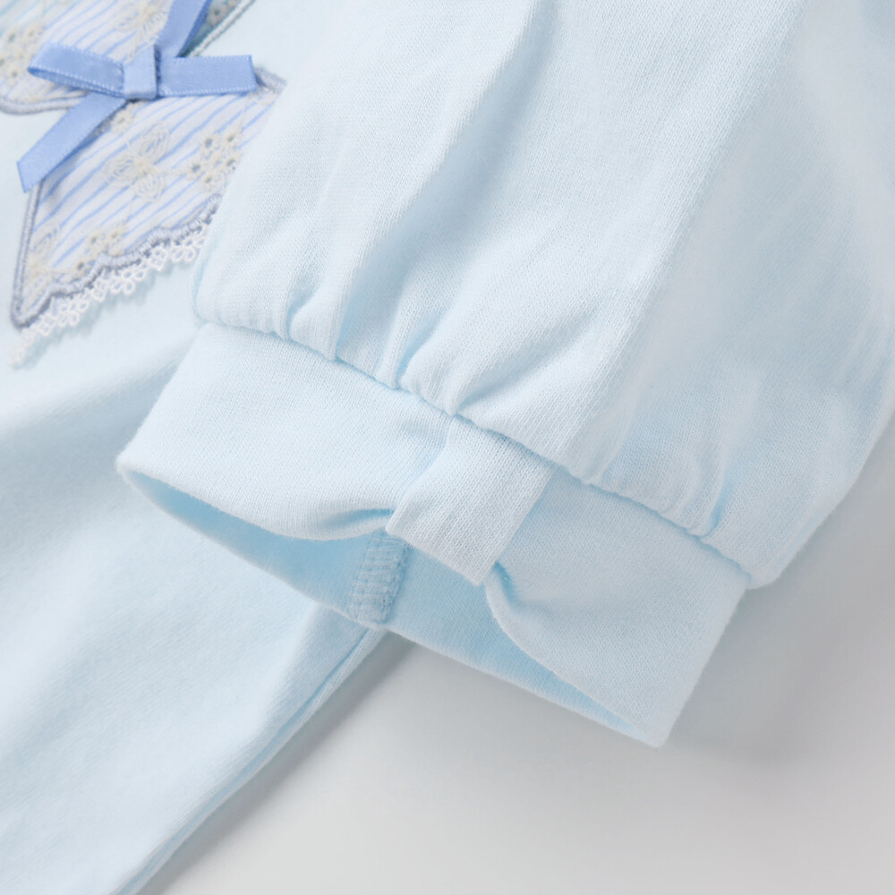 ブルーは、ストライプに花レースを合わせたキャンディーのモチーフが主役。