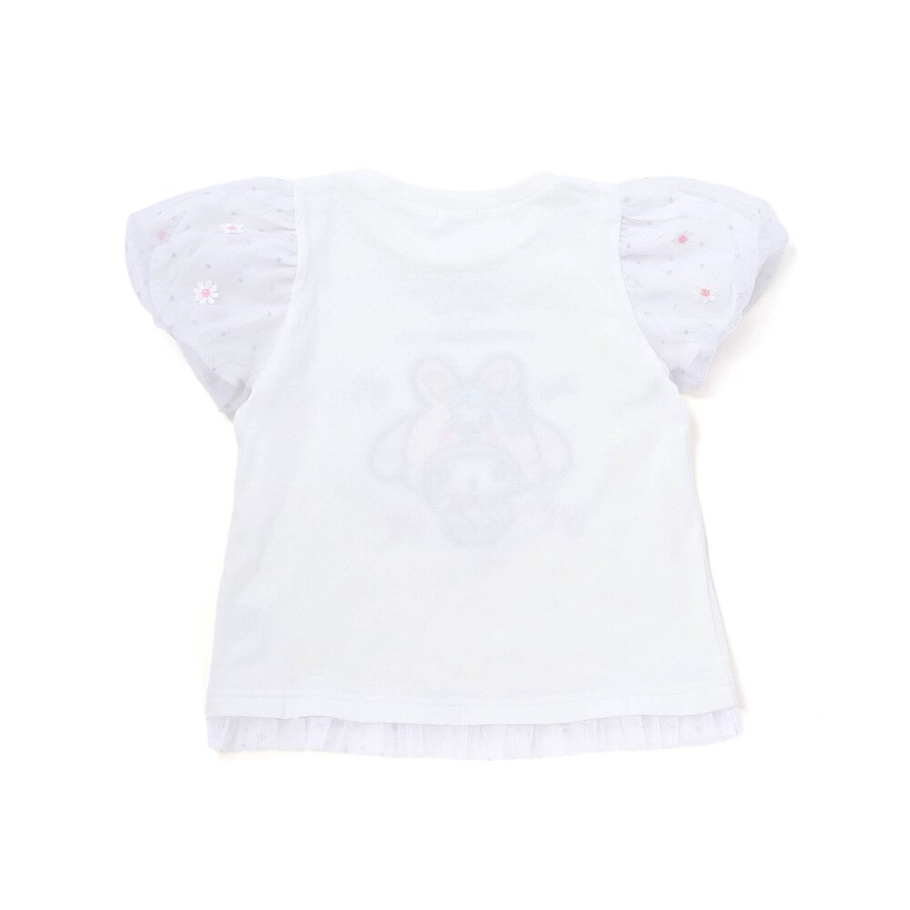 袖をそっと飾る花レースや、胸元に散りばめられた小さなリボンのプリントは、まるで可愛いを集めた宝箱のよう。