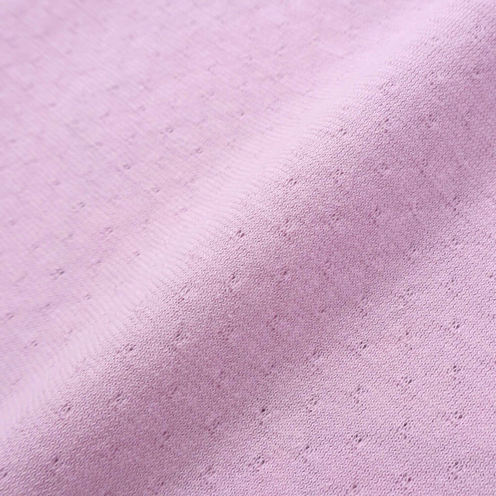 身生地には柔らかなレーシー天竺、襟にはすっきりしたスパンフライスを使用し、着心地のよさも忘れずに。