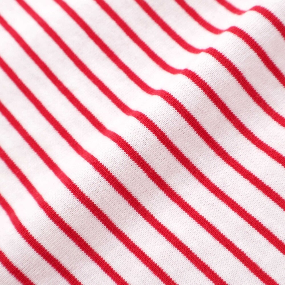 身生地は肌ざわりの良い天竺、襟にはやさしくフィットするスパンフライスを使用し、見た目の可愛さだけでなく着心地のよさにもこだわりました。