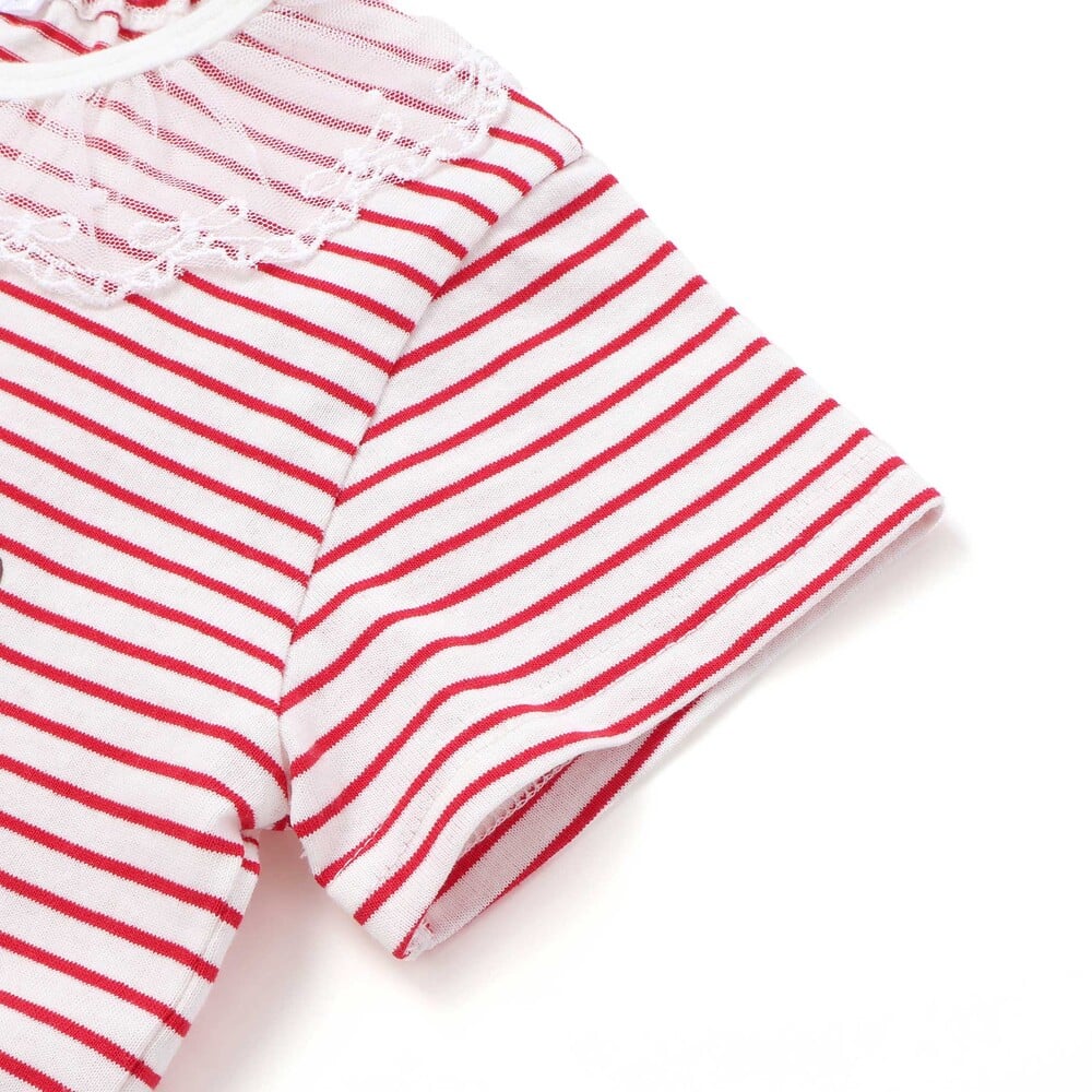 | 素材 | (本体)綿100% (リブ)綿95% ポリウレタン5% 【フリル部分】 ポリエステル51% ナイロン49% 【レース部分】 ポリエステル100% |