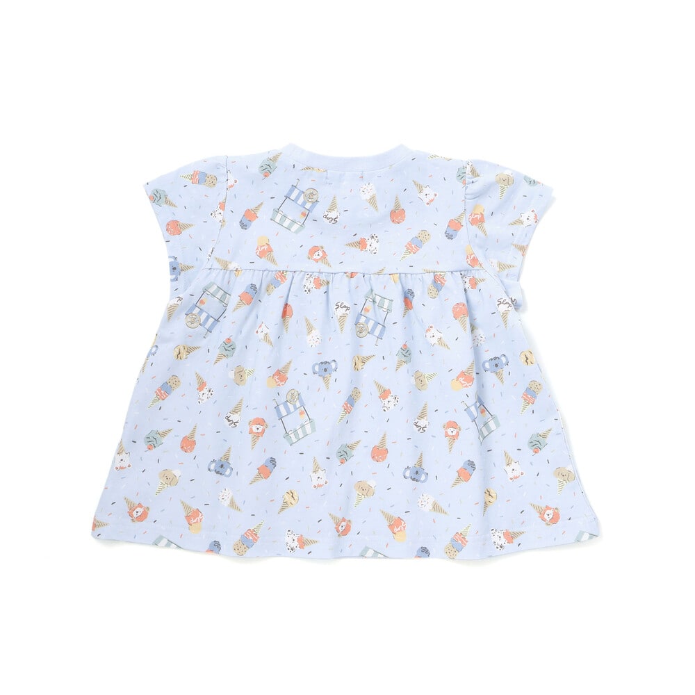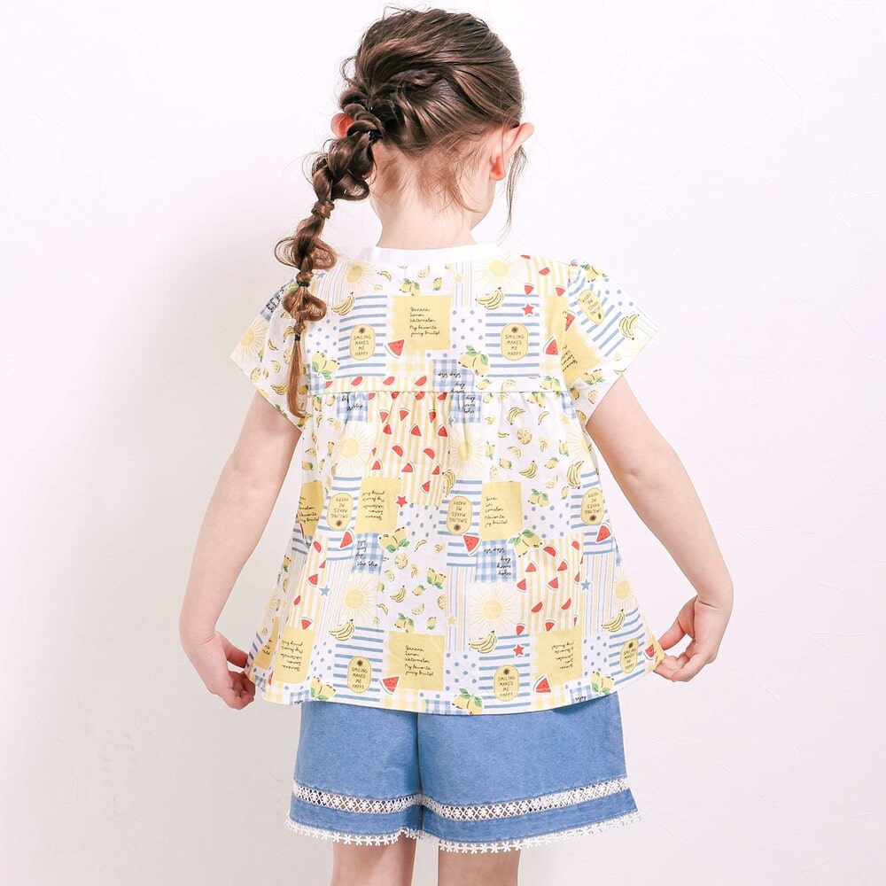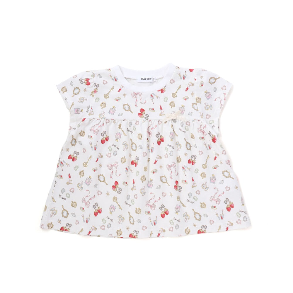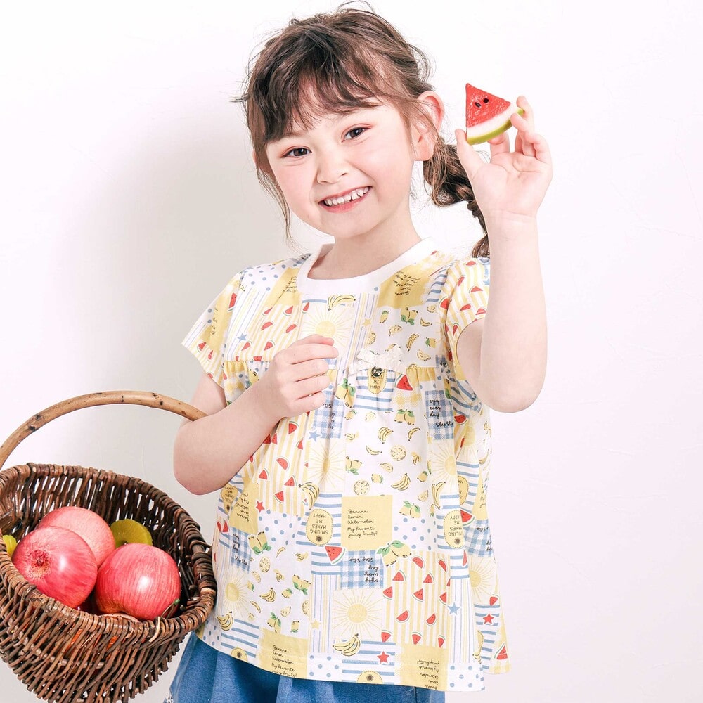 カラーごとに違った総柄デザインが楽しめて、思わずどれにしようか迷ってしまう女の子用半袖Tシャツ。