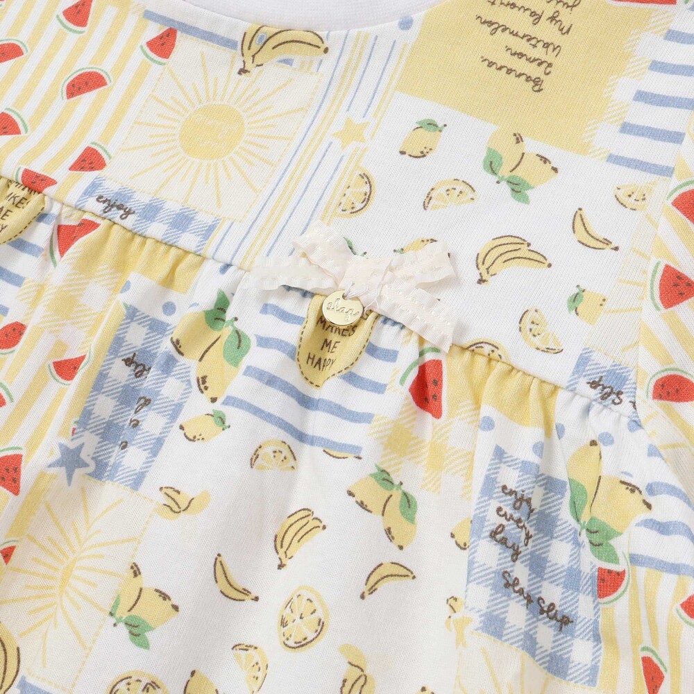イエロー系は、スイカやレモン、バナナなどのフルーツをたっぷり詰め込んだ、明るく元気な印象の総柄です。