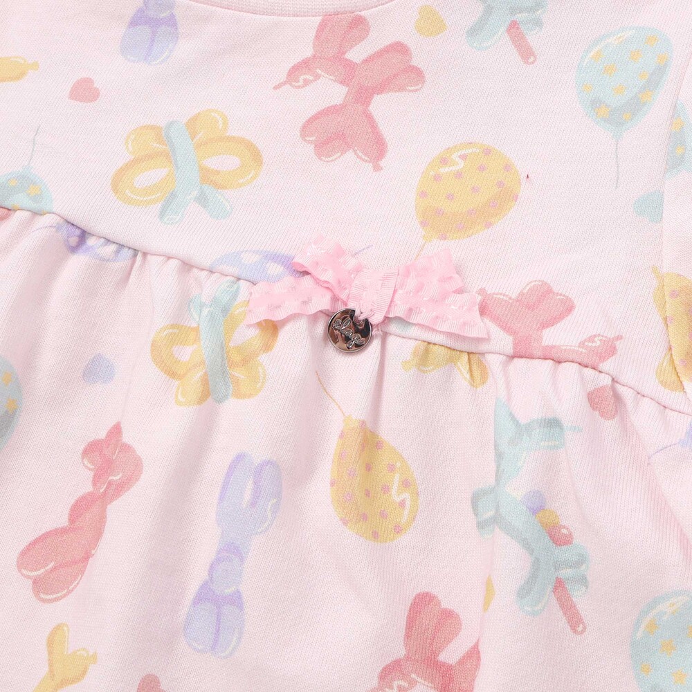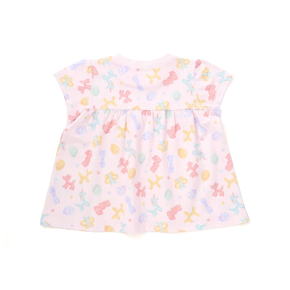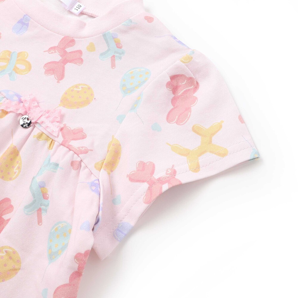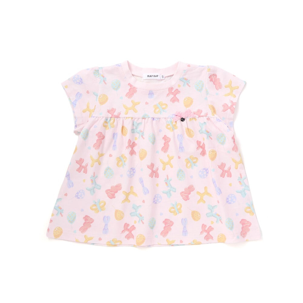 ピンク系は、イヌやウサギなどの動物たちがバルーンになった、ふんわり可愛らしい総柄デザイン。