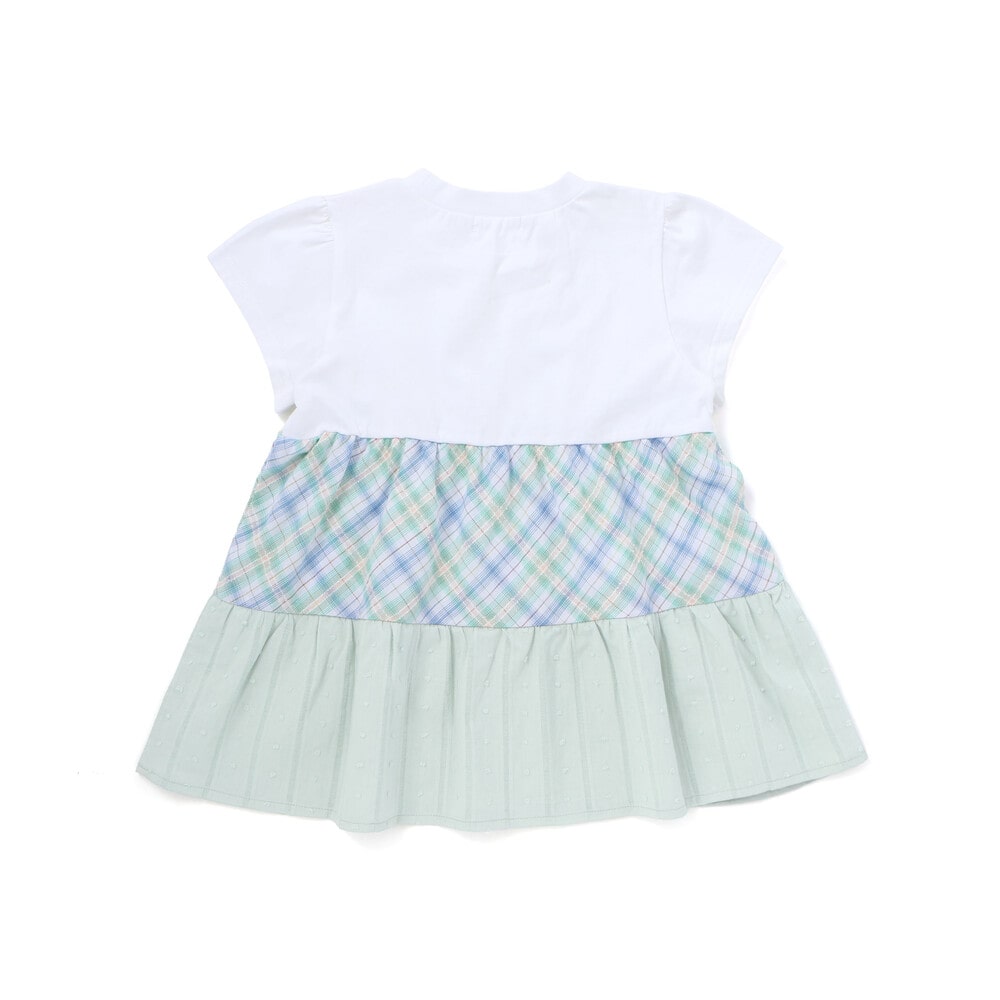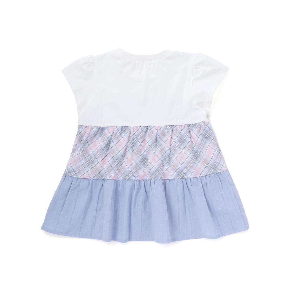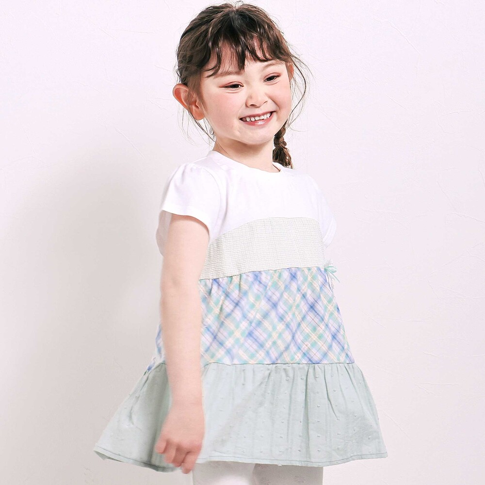 異なるチェック柄の表情を楽しめる、ティアードデザインがとびきり可愛い女の子用半袖Tシャツ。