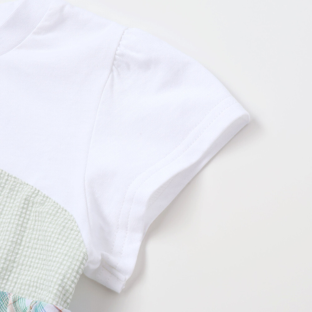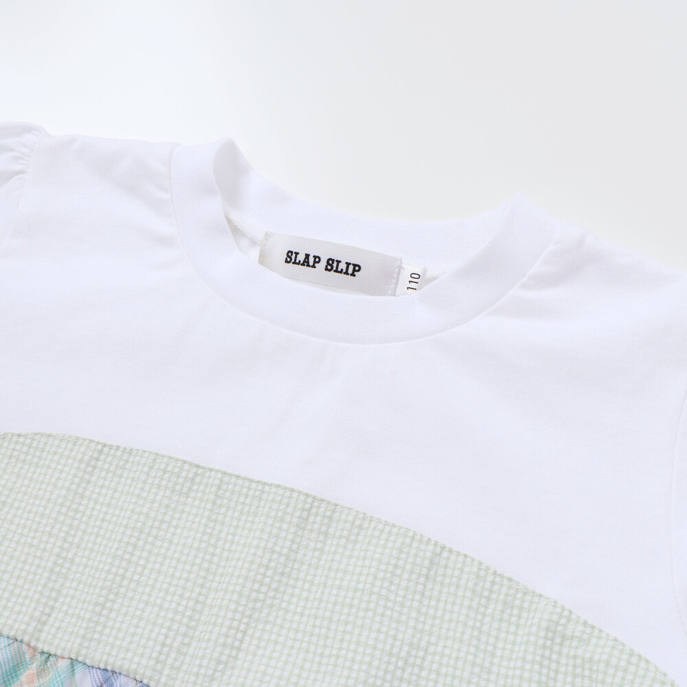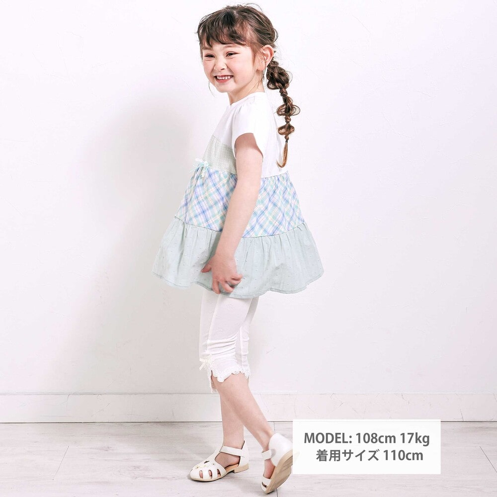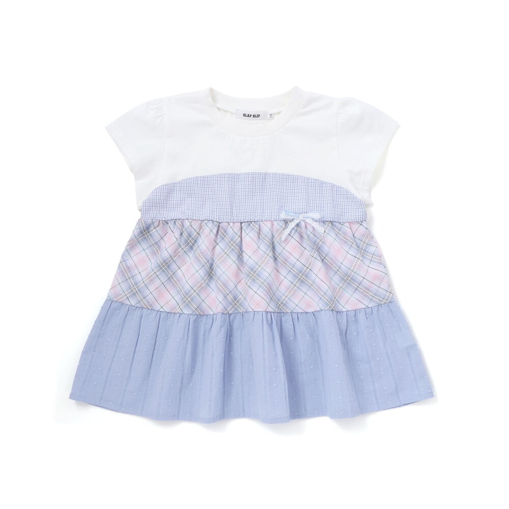 異なるチェック柄の表情を楽しめる、ティアードデザインがとびきり可愛い女の子用半袖Tシャツ。
