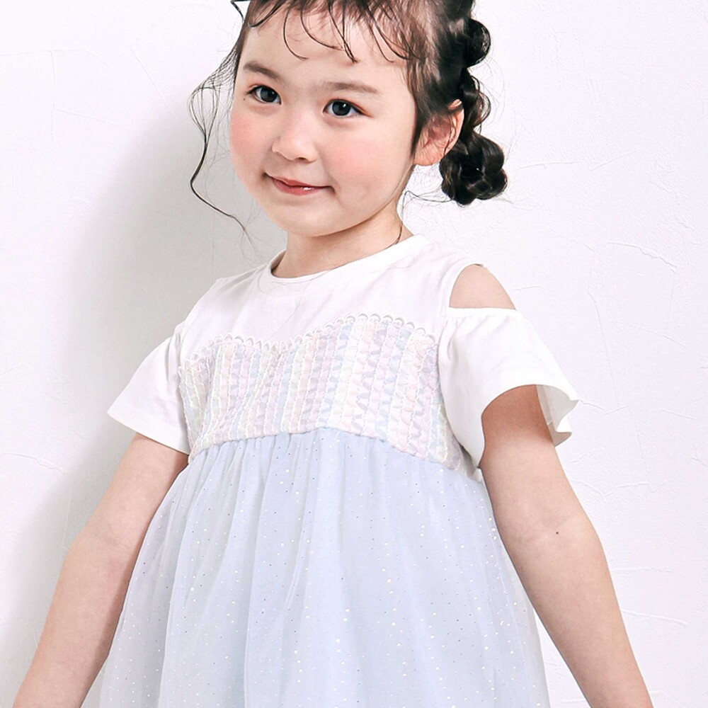 袖はオープンスリーブ仕様で、軽やかに揺れるシルエットが女の子らしさを引き立てます。