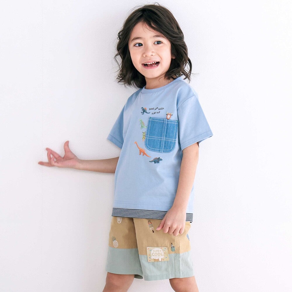 カラーごとにレイヤードの見え方が異なり、着るだけでコーデが決まる男の子用半袖Tシャツ。