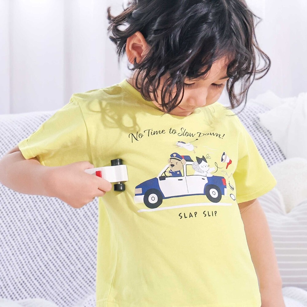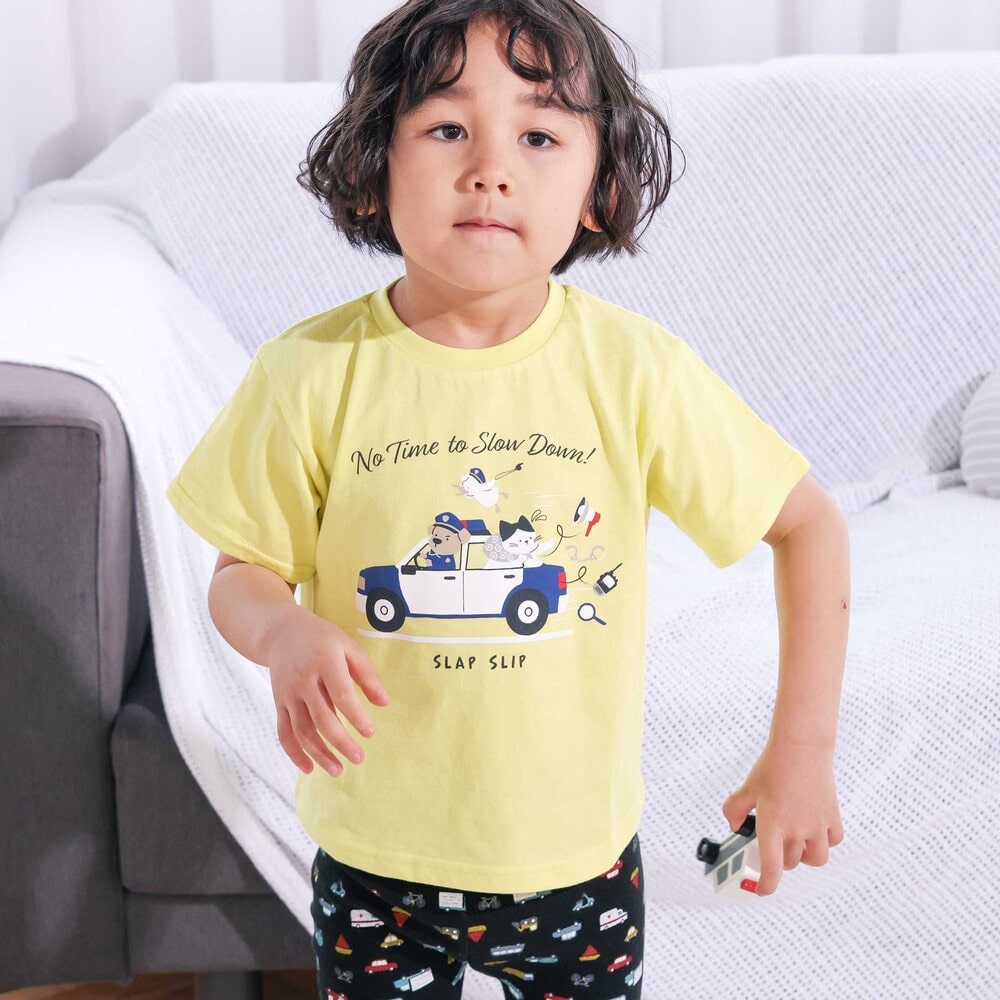 汚れが落ちやすく、のびのび遊べる素材で仕上げたスララクシリーズ!毎日が嬉しくなる男の子用半袖Tシャツ。