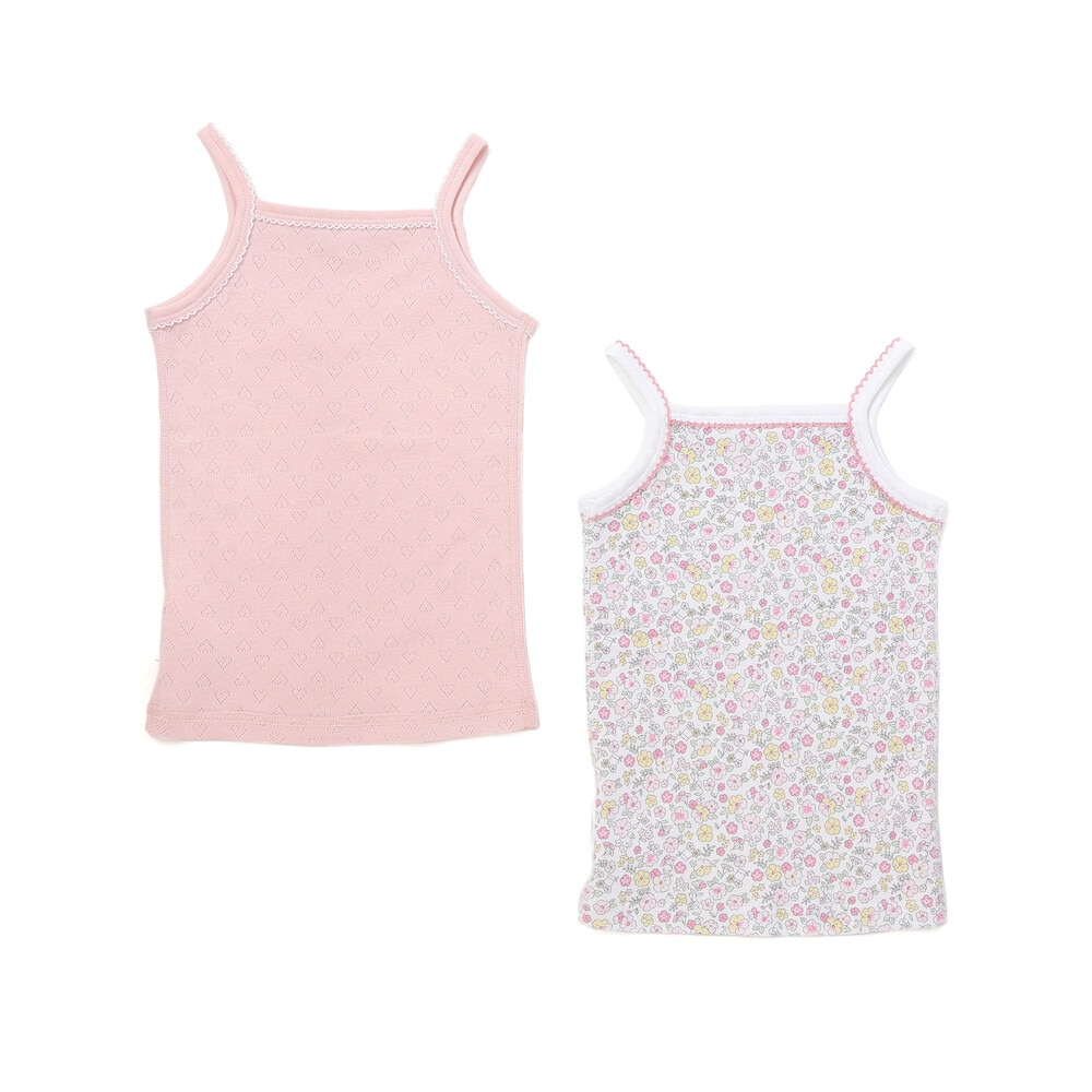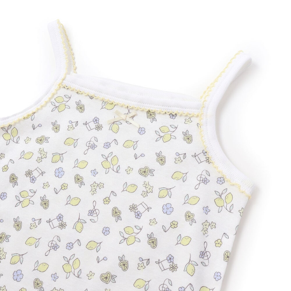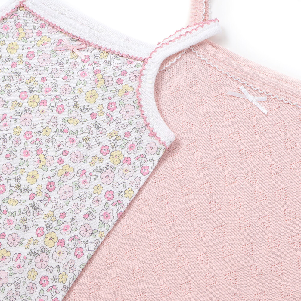 針抜きで表現したハート柄と、やさしい雰囲気の総柄キャミソールがセットになった、女の子のためのときめきインナー。