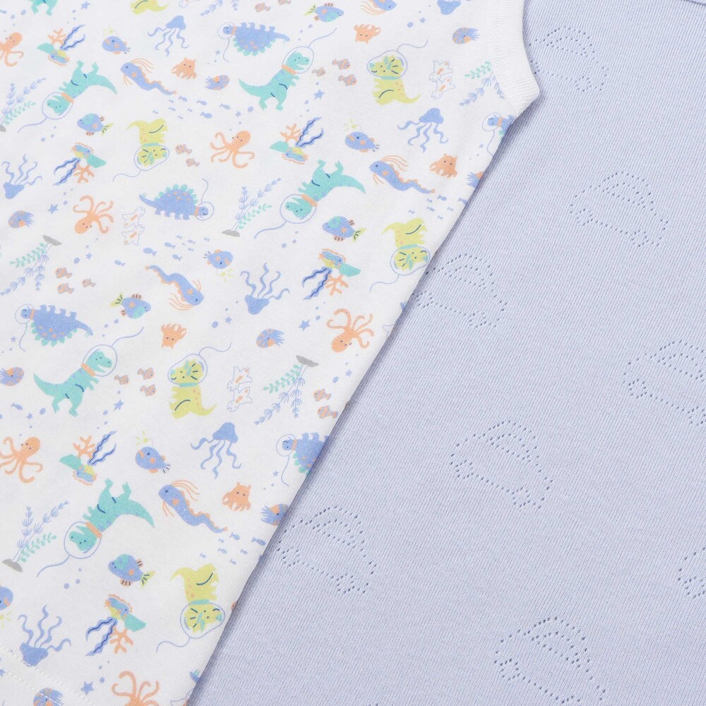 恐竜の海中遊泳とくるま(ブルー)は、海に潜った恐竜や海の生き物たちがのびのびと描かれ、想像力をくすぐるデザイン。