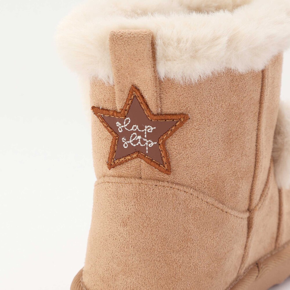 履き口まわりにはふわふわのフェイクファーをあしらい、足元からあたたかくシーズンムードを高めてくれます。