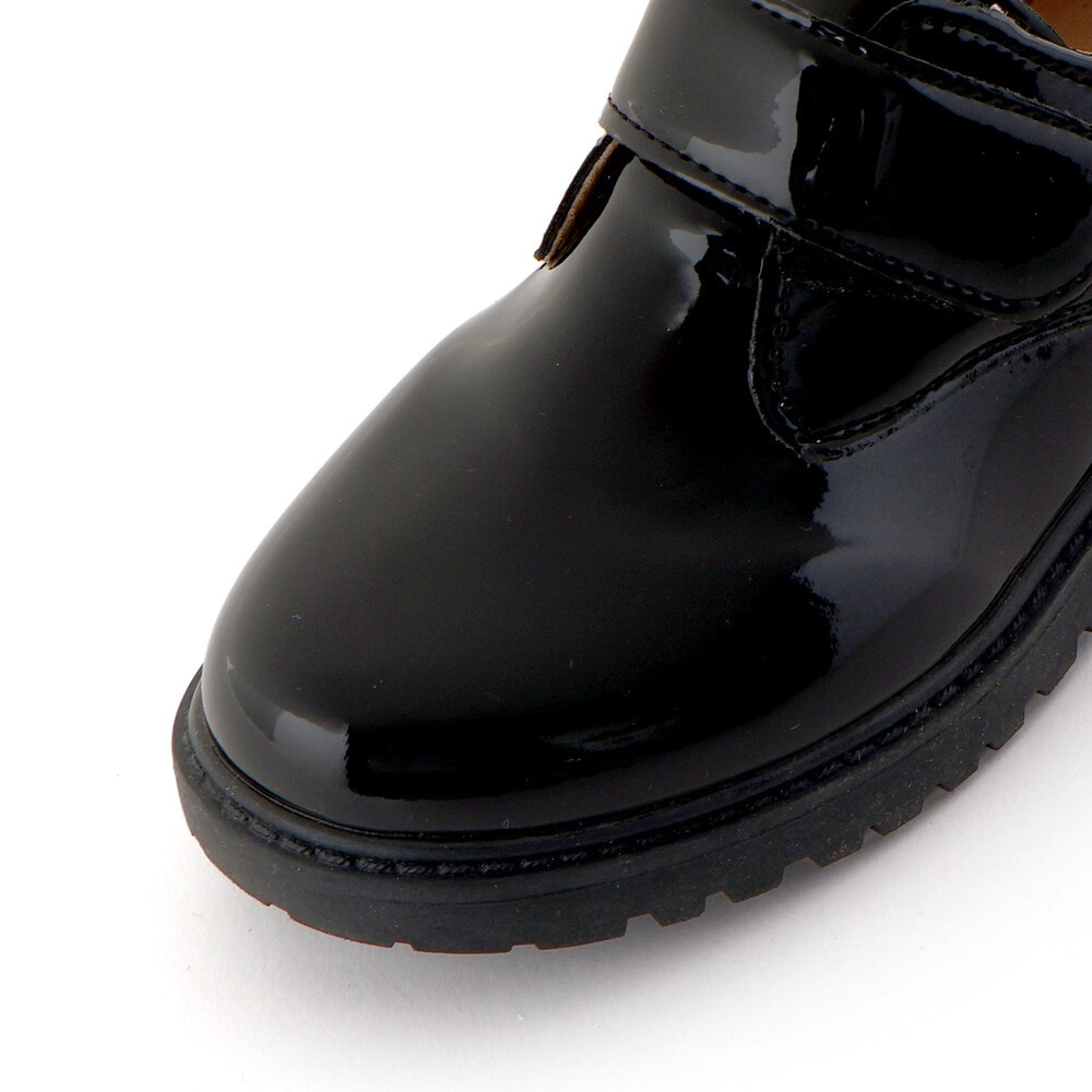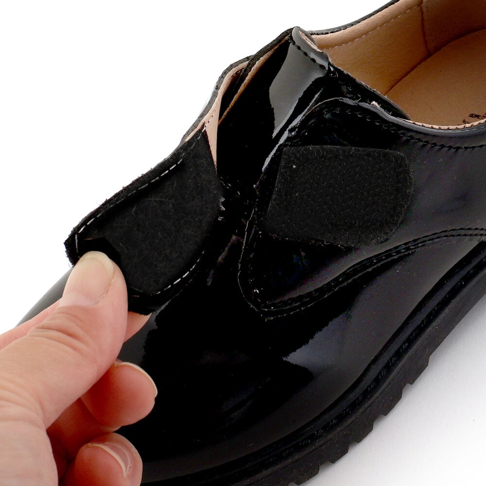 ツヤ感のあるエナメル素材が上品で清潔感のある印象を与え、特別な日の装いを引き立てます。