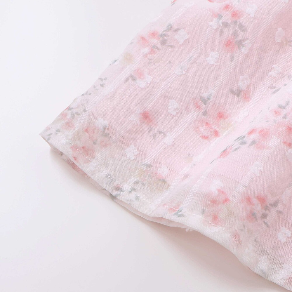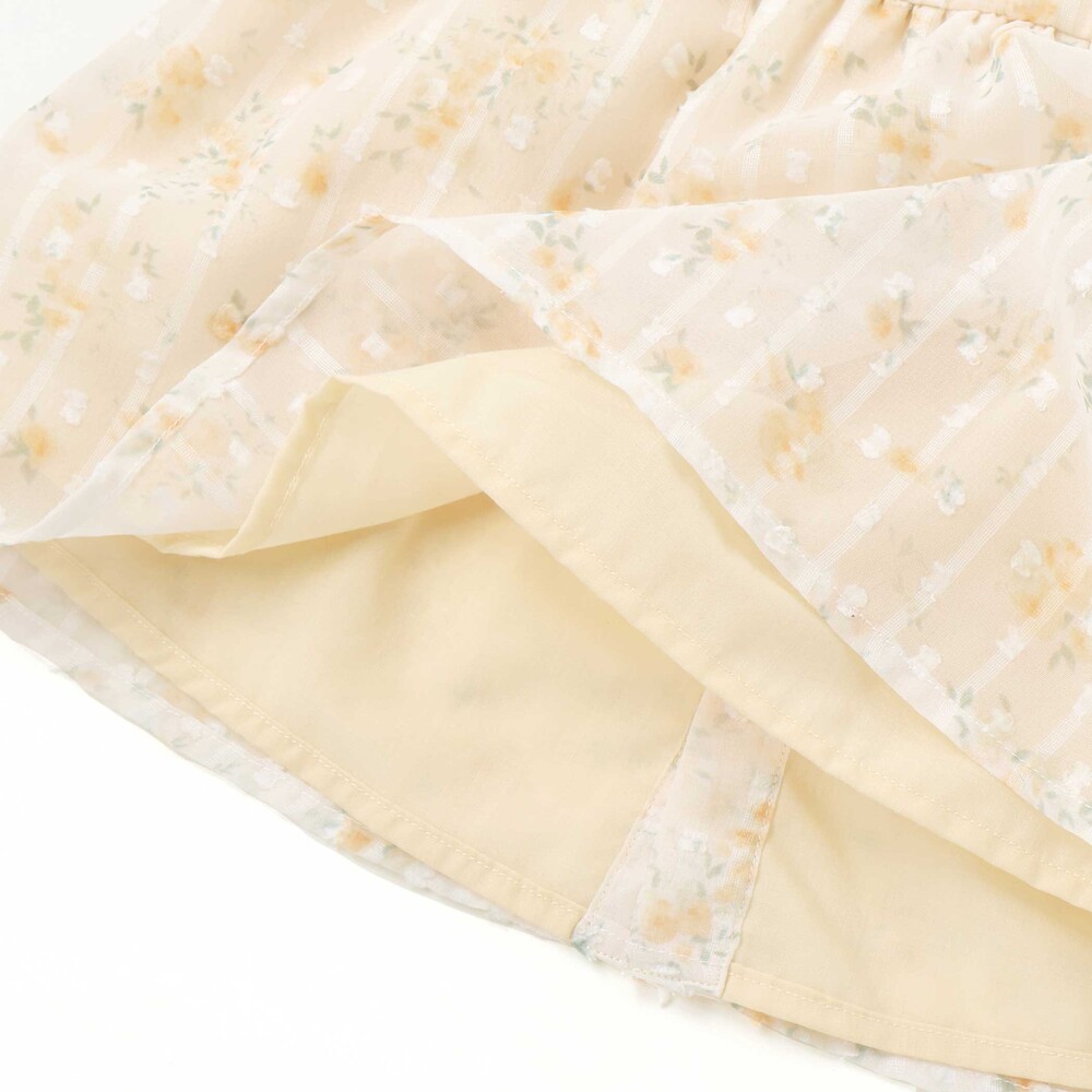 ワンピースの身生地には、繊細なお花の模様が美しいシフォンレースを使用。