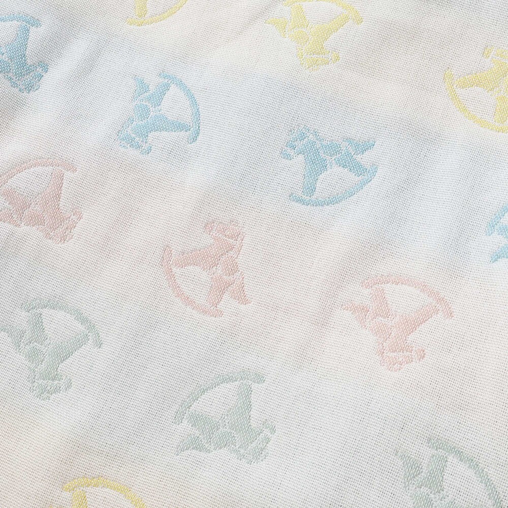 ブルー系は、カラフルな木馬たちがたくさん並んだ、見ているだけで楽しくなるようなデザイン。