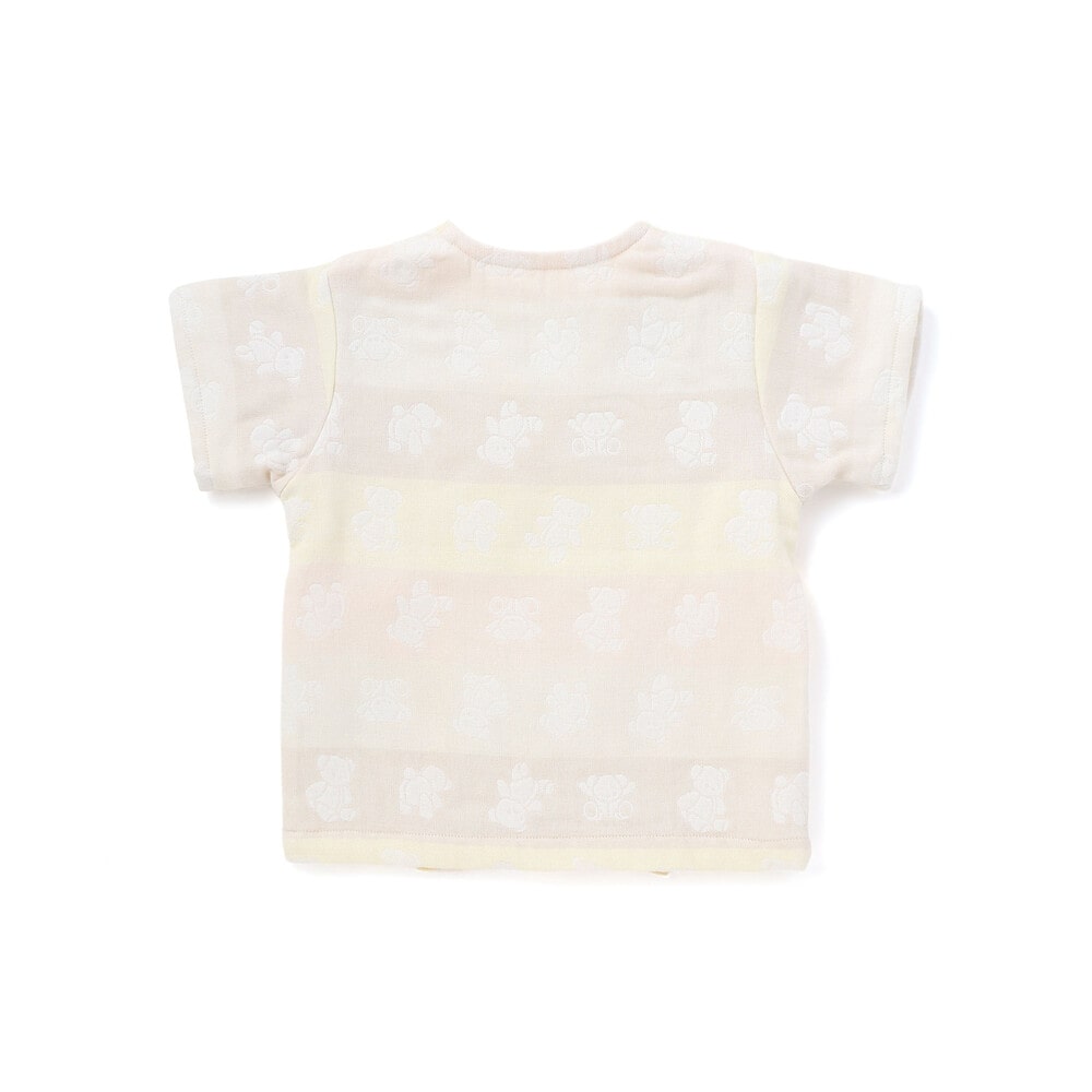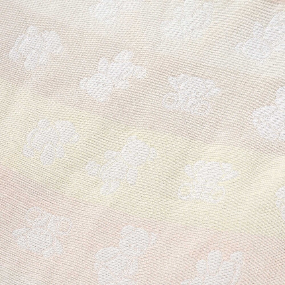 オフホワイト系は、やさしい雰囲気のクマ総柄に、ところどころベージュやピンク、イエローのストライプを合わせた、柔らかく可愛いデザイン。
