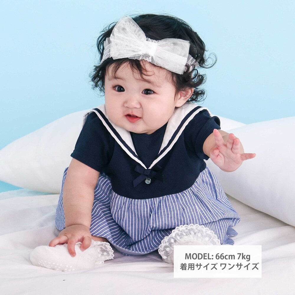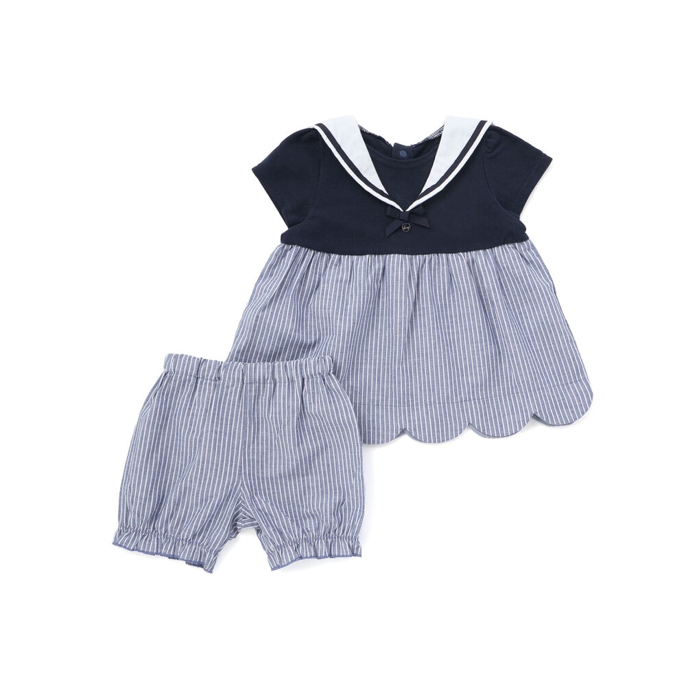 マリンムードたっぷりの、女の子ベビーにぴったりな可愛いセットアップ。