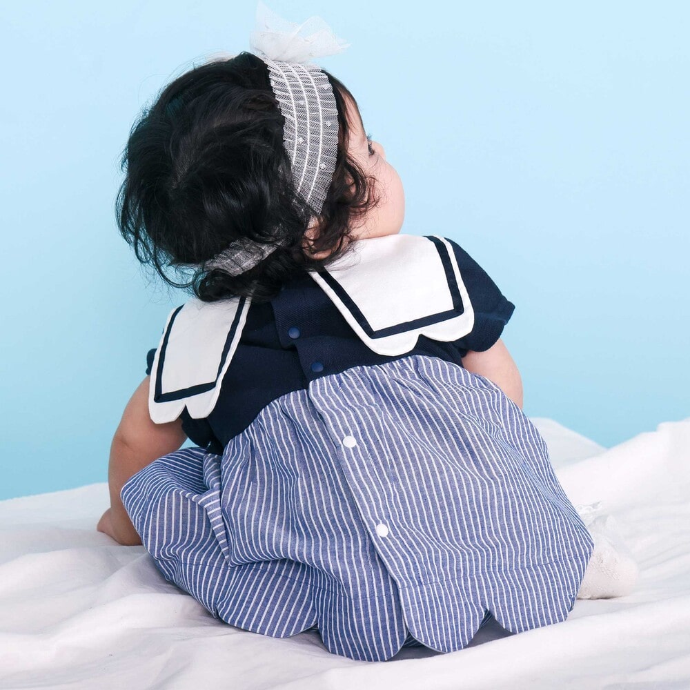 ネイビー系はドット柄で、上品だけどとびきり可愛い王道マリンスタイルに。