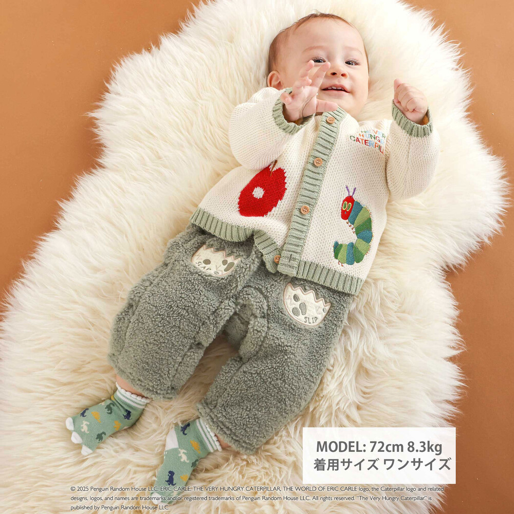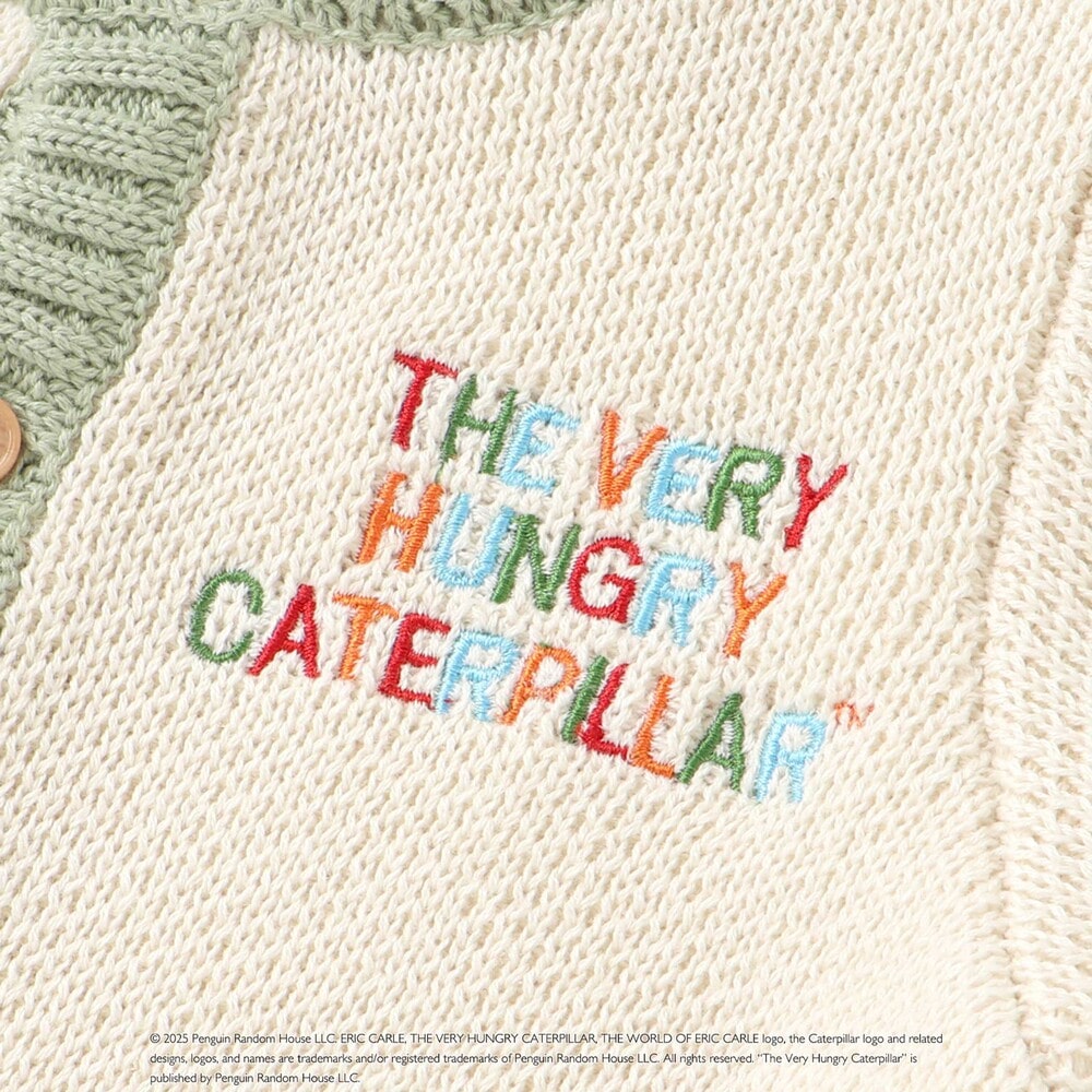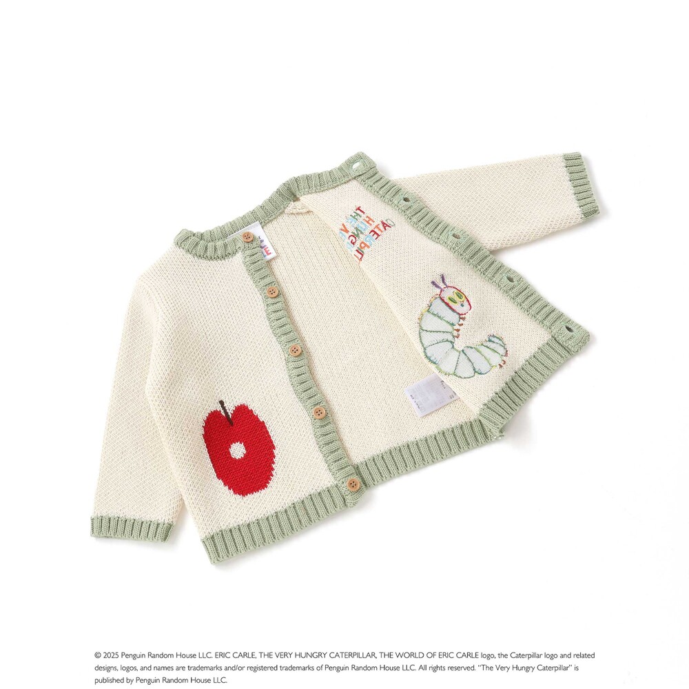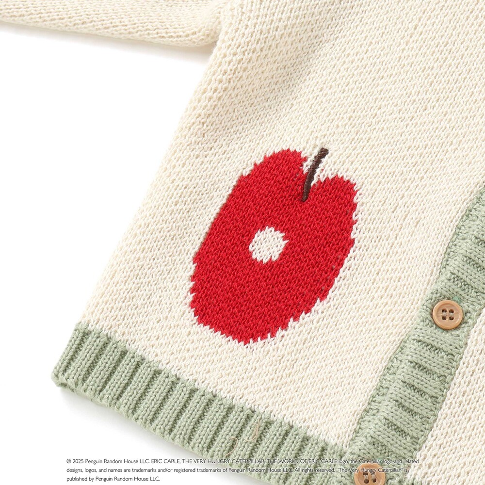 絵本の中から、飛び出したあおむしやフルーツをカーディガンにオン!