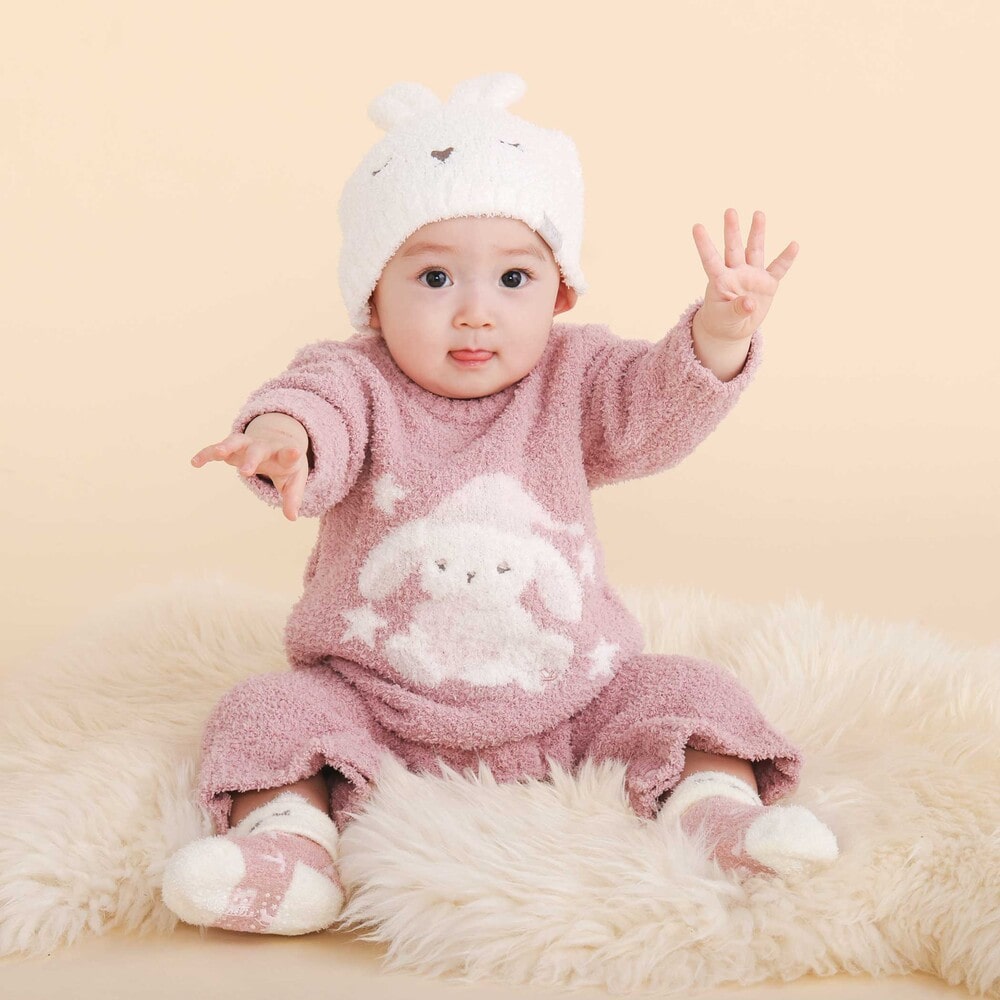 伸びのある素材で、赤ちゃんの頭にやさしくフィットします。