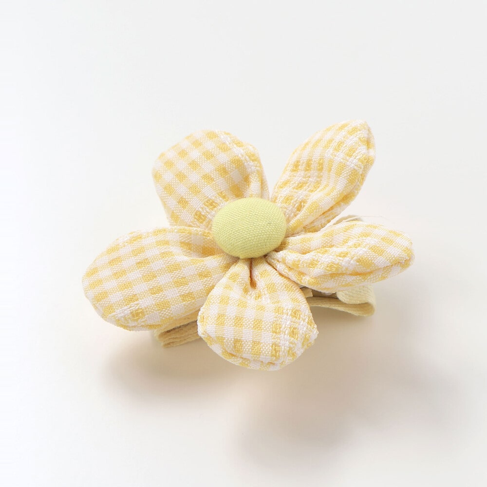 イエロー系:元気なイエローのお花にオフホワイト系の総柄、キュートなピンクのリボンを合わせた、明るく cheerful な雰囲気のセット。春夏のお出かけにもぴったり。